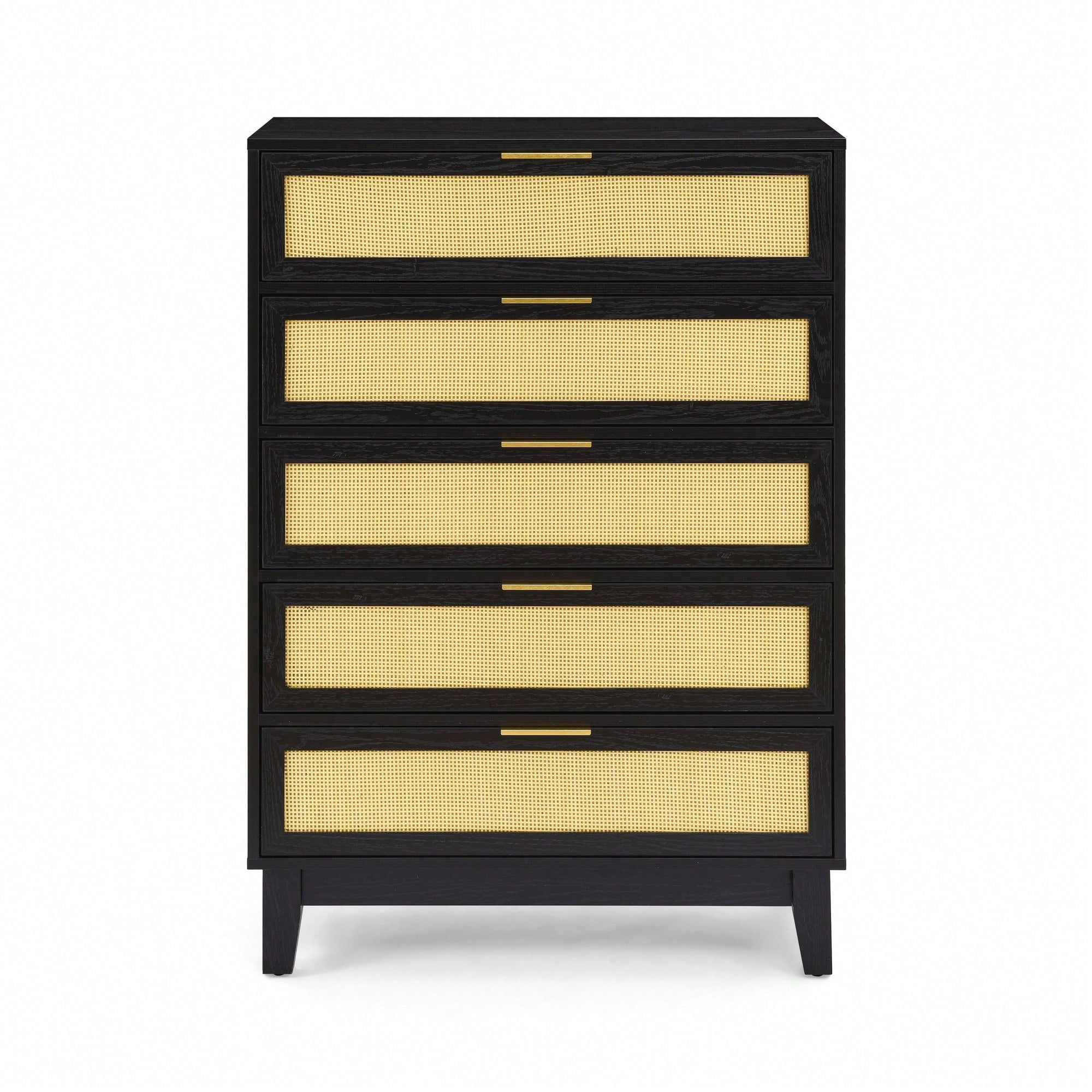 Stylish 5-Drawer Rattan Dresser - Modern Wooden Chest For Bedroom, Hallway & Living Room With Ample Storage Space