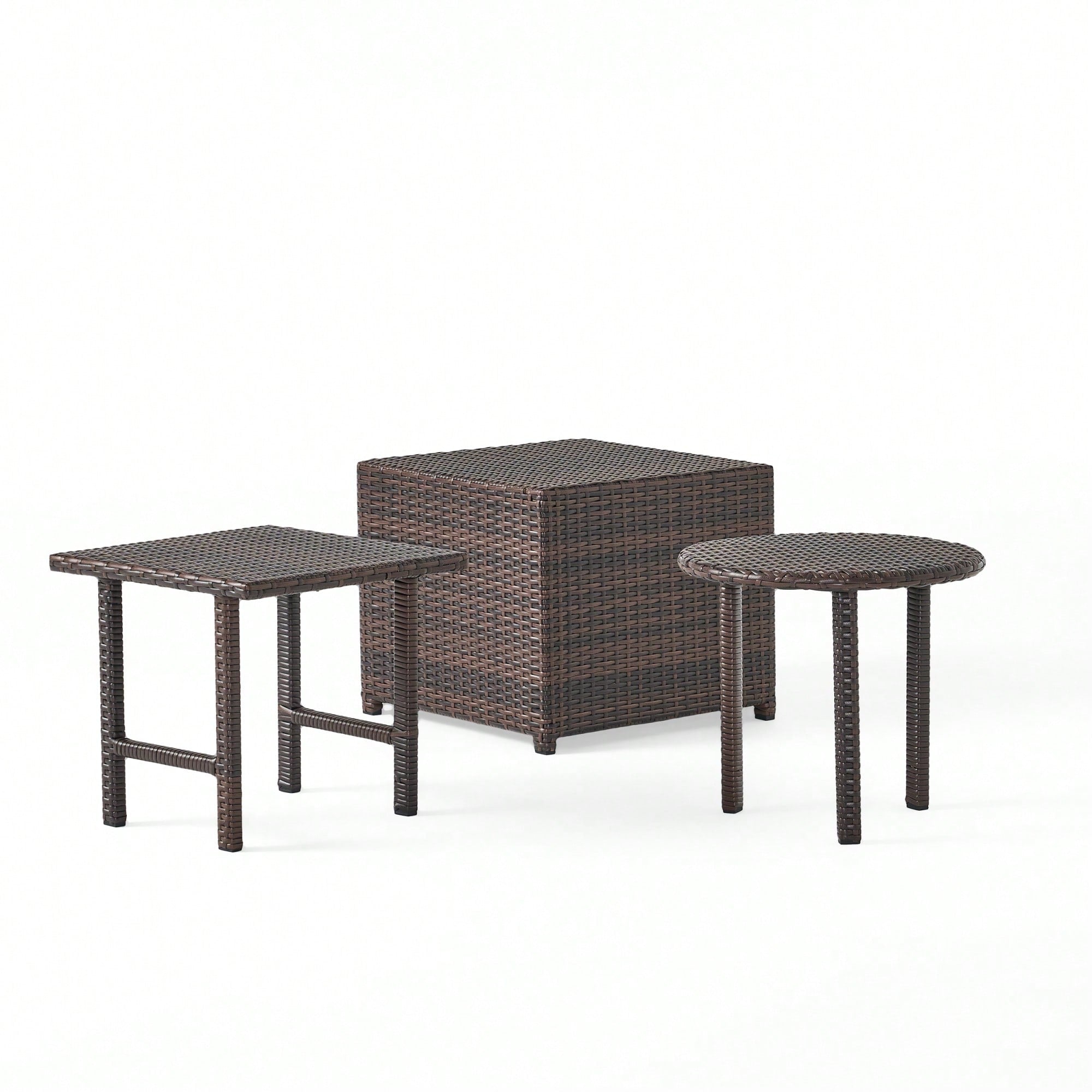 Regular price $209.99 USDSale price $209.99 USD Regular priceUnit price per$319.99 USDSale Sold out1. Features- Includes two tables and one ottoman-table for versatile outdoor use- Made with all-weather PE wicker in a multi-brown color for a stylish look- Constructed...