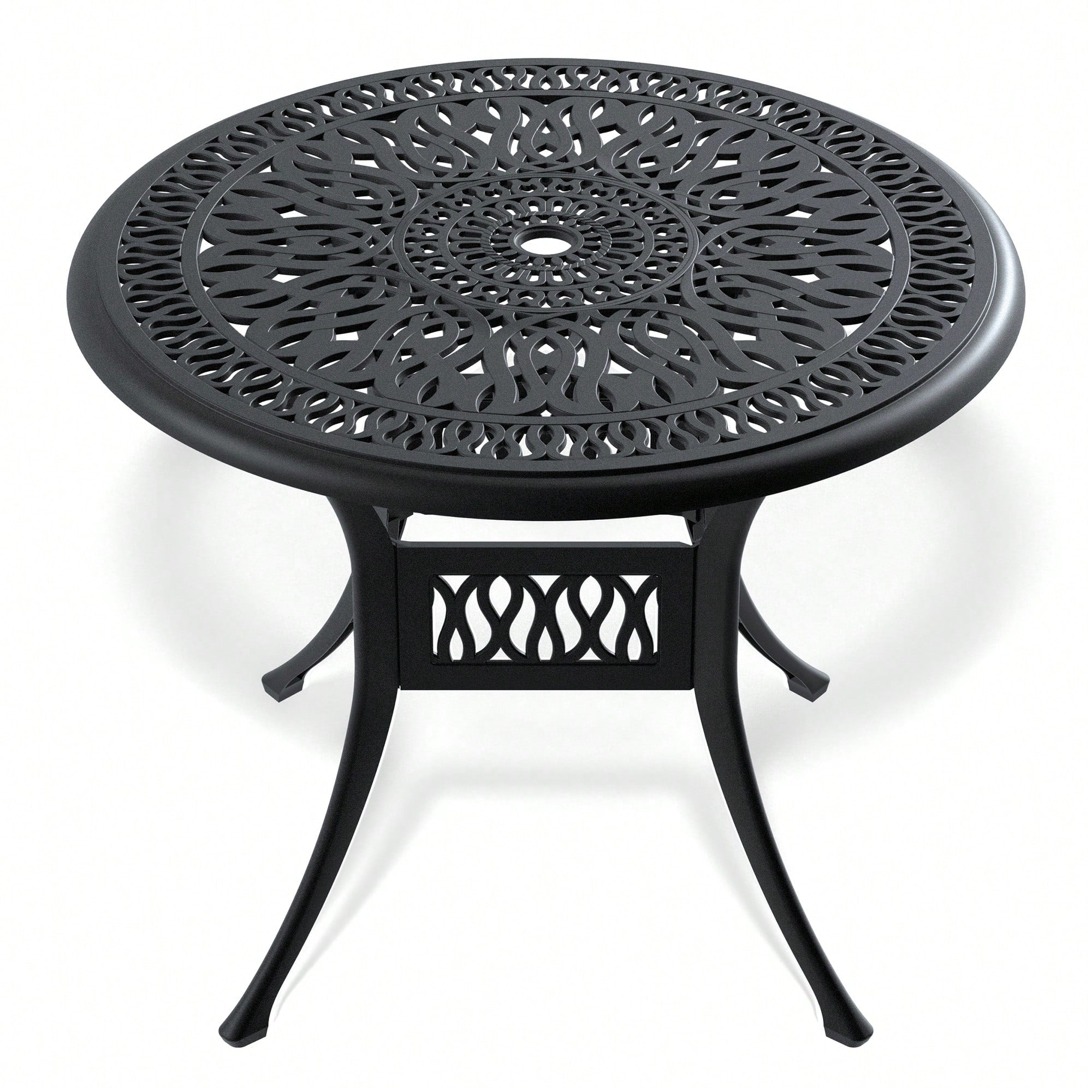 Stylish 35.43-Inch Cast Aluminum Patio Dining Table With Elegant Black Frame And Umbrella Hole