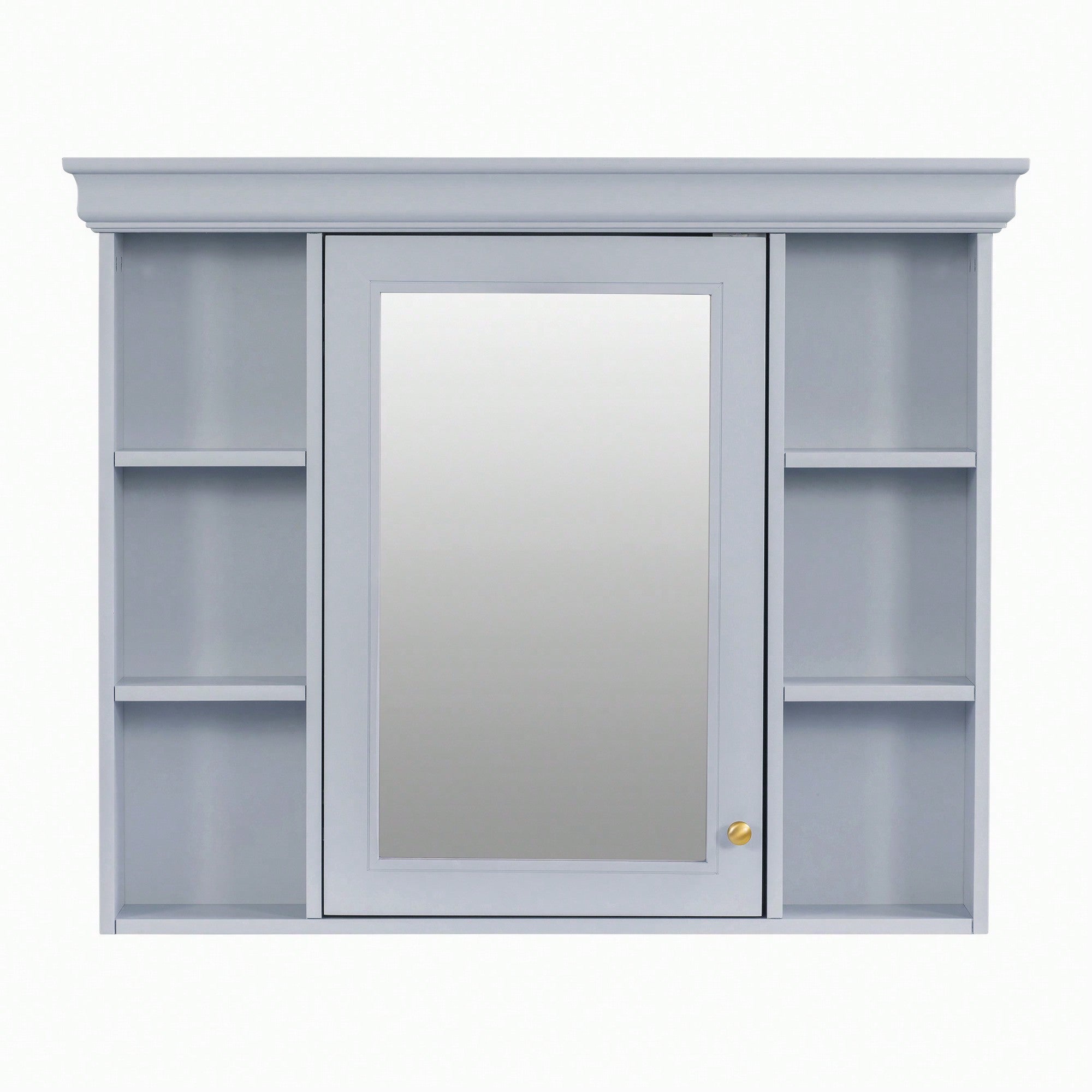 Stylish 35'' X 28'' Wall-Mounted Bathroom Storage Cabinet With Mirror Door And 6 Open Shelves - Modern Design For Efficient Organization