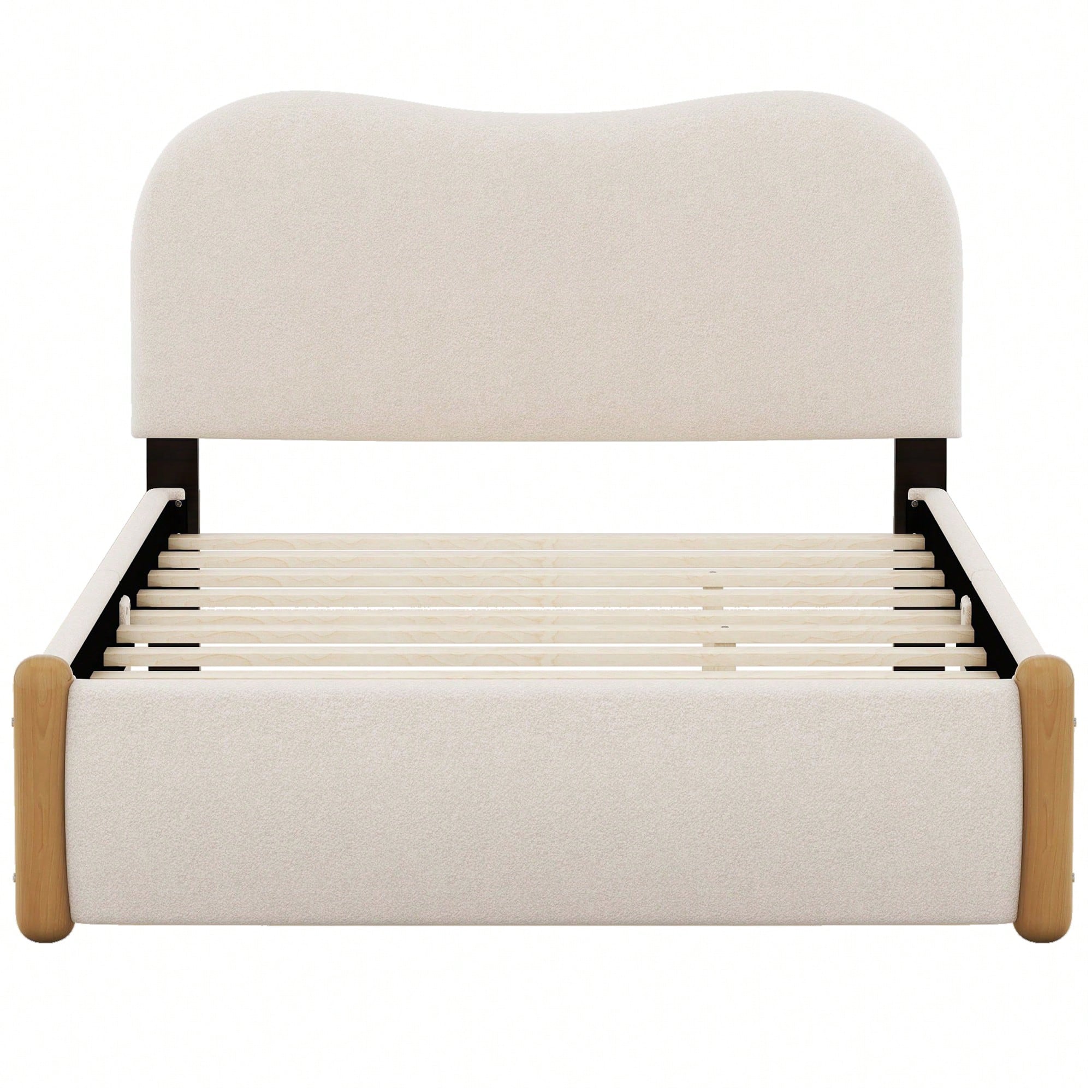 Stylish Full Size Upholstered Platform Bed With Sturdy Wood Legs In Beige Finish