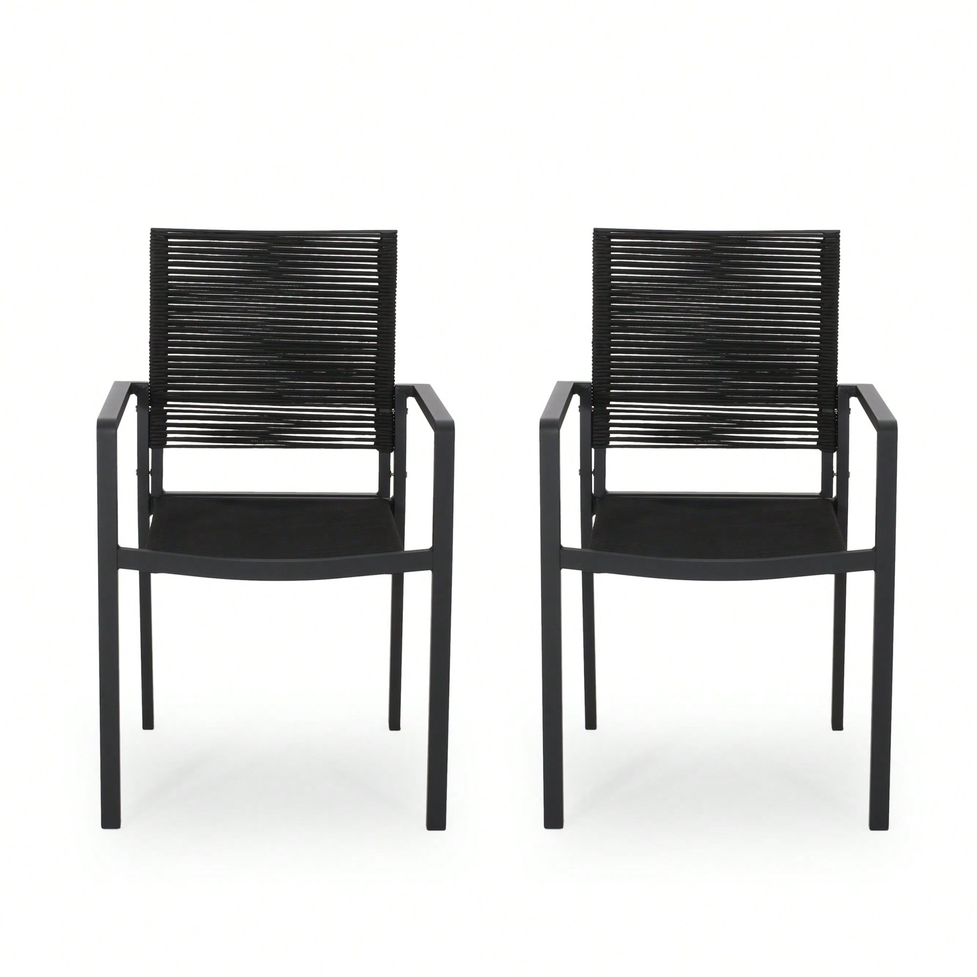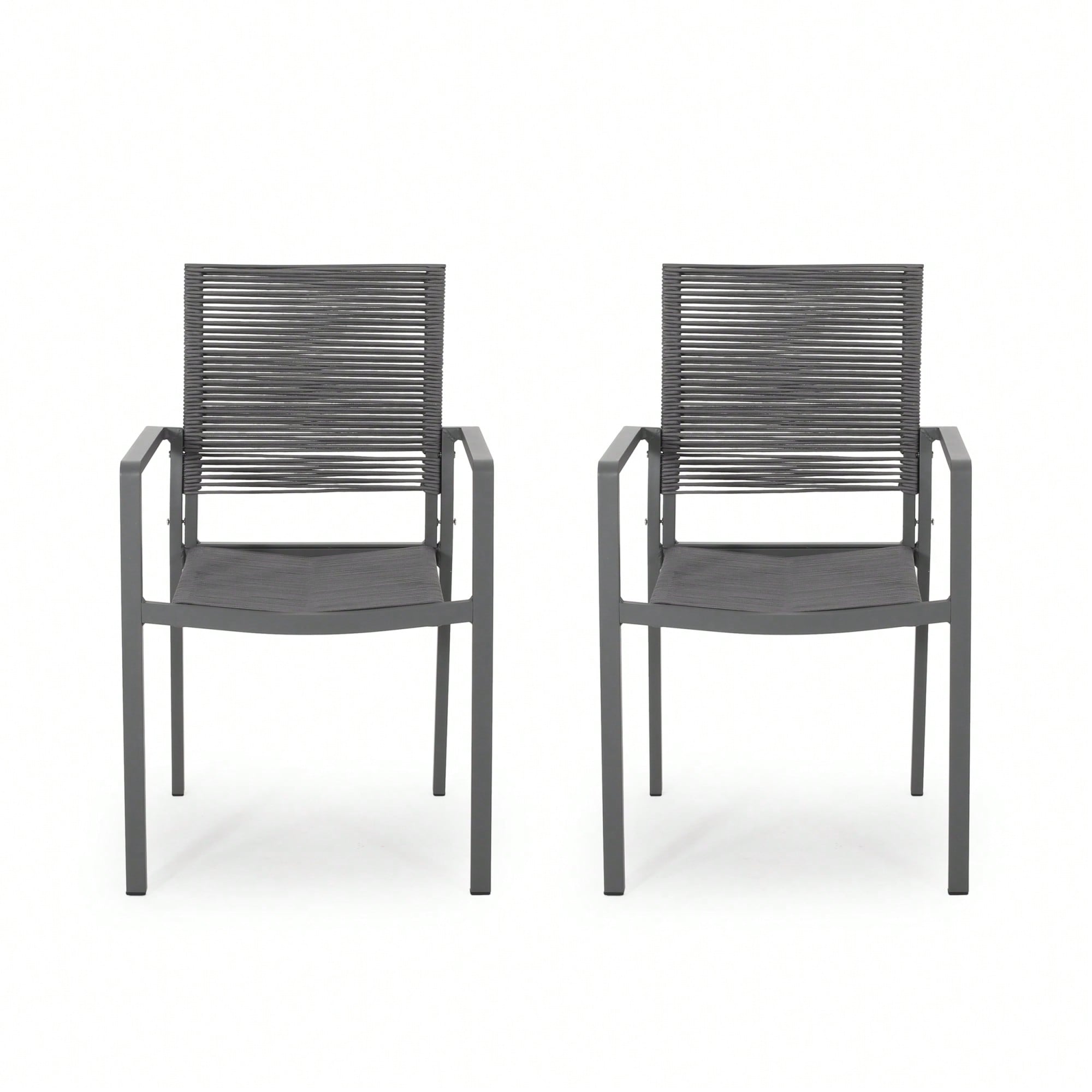 Stylish Outdoor Aluminum Dining Chairs With Rope Seat Set Of 2 Dark Gray And Black
