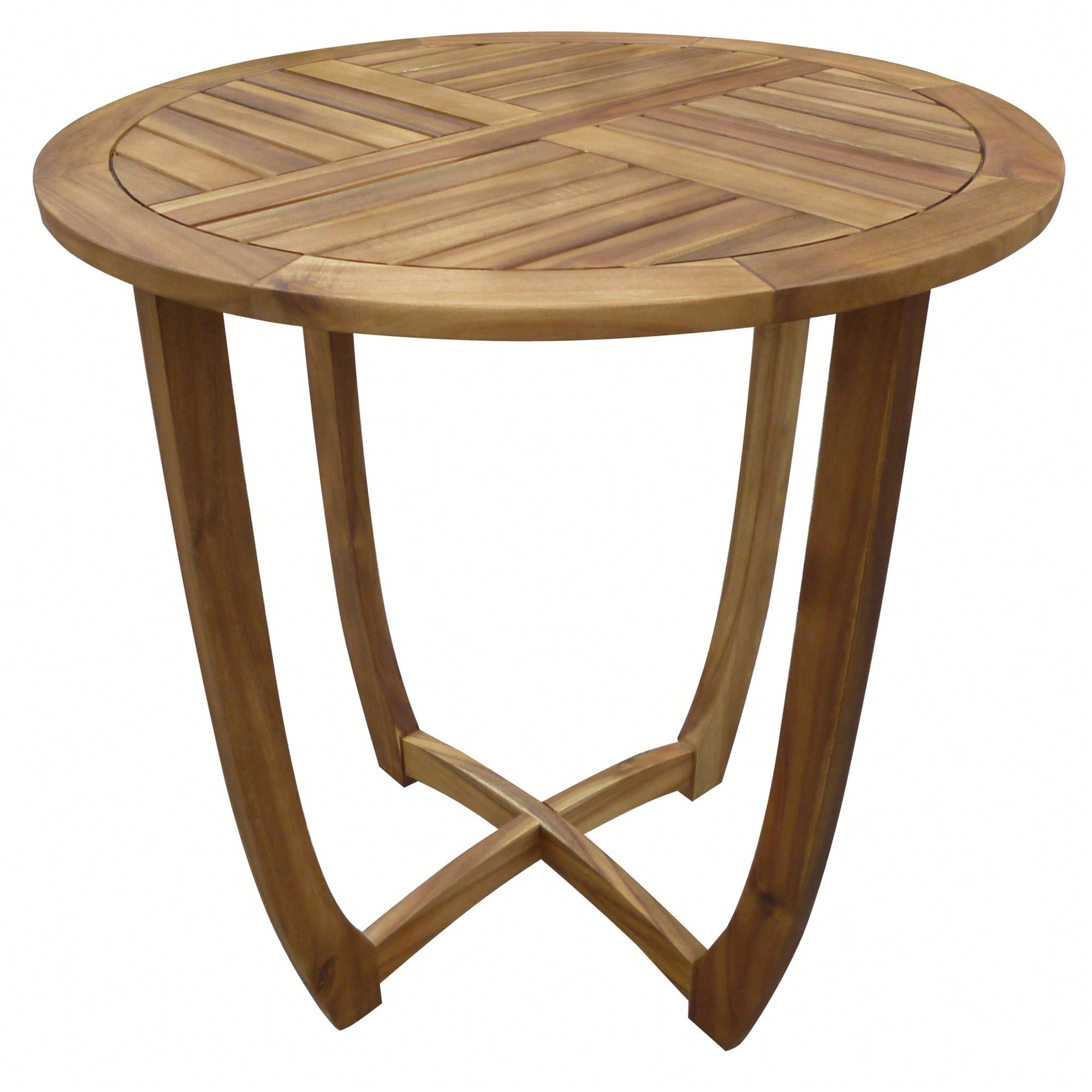 Stylish Outdoor Round Acacia Wood Accent Table - 27.5" Teak Finish For Durable Garden Or Patio Decor