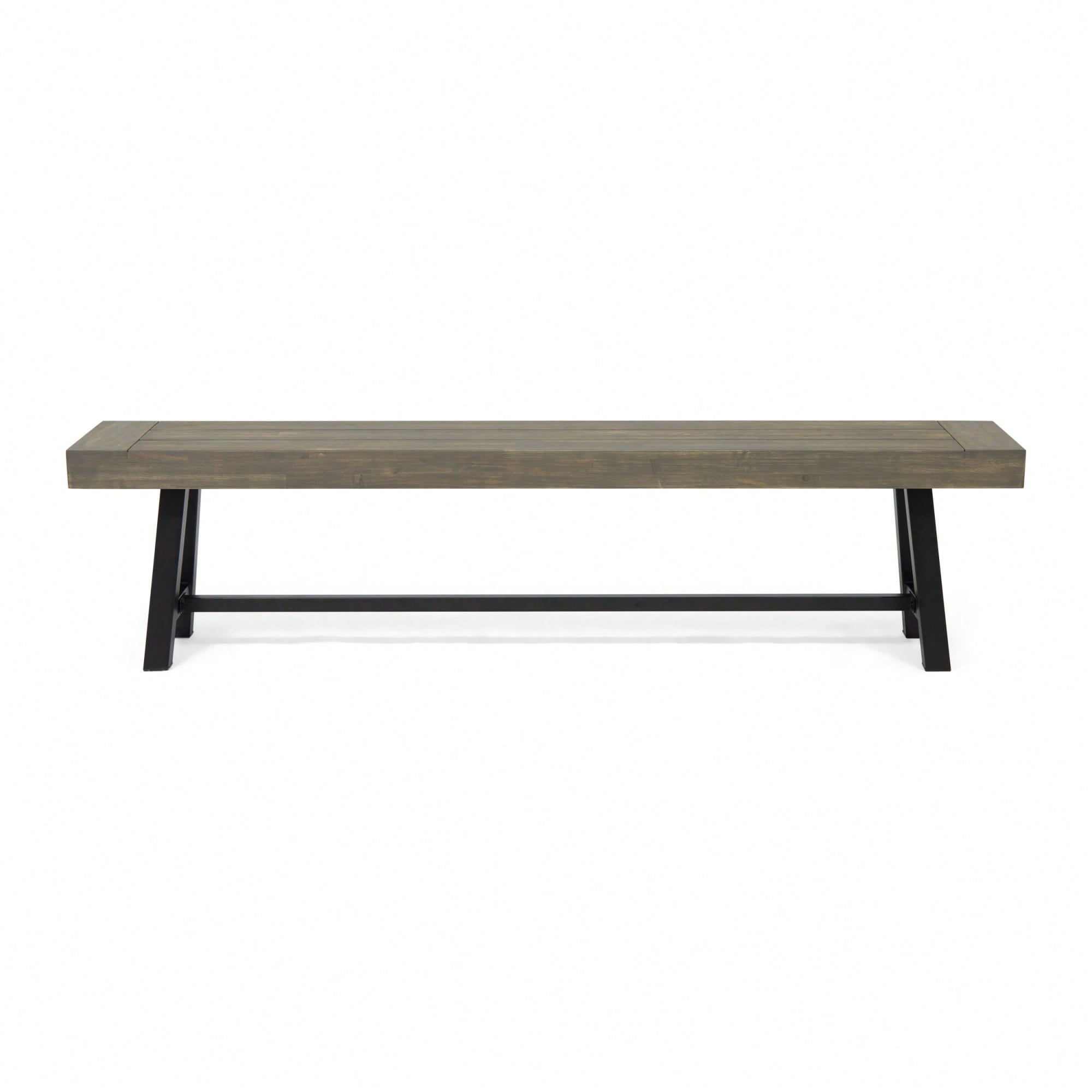 Stylish Outdoor Acacia Wood Patio Bench With Grey And Rustic Metal Accents
