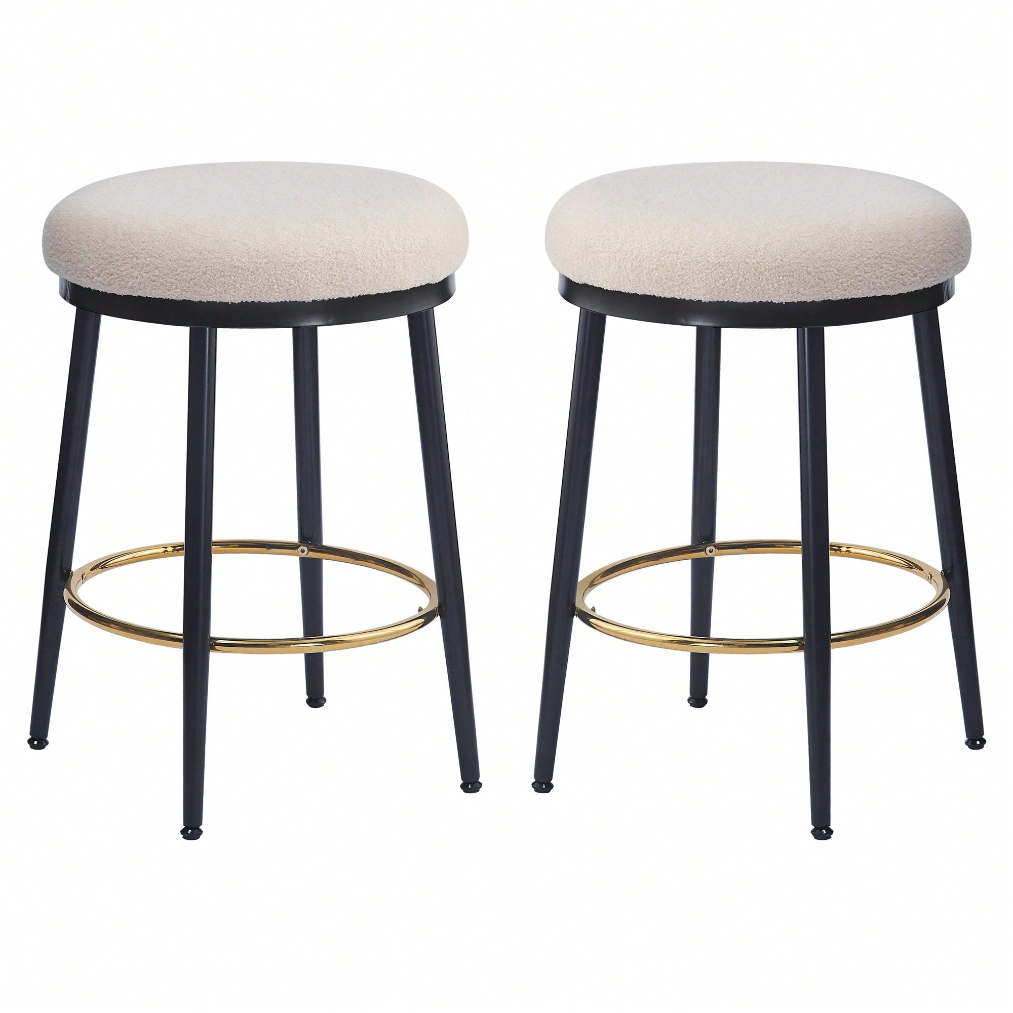 Stylish White Counter Stools Set Of 2 With Iron Frame And Comfortable Sponge Cushion For Kitchen Dining Room And Bedroom Use