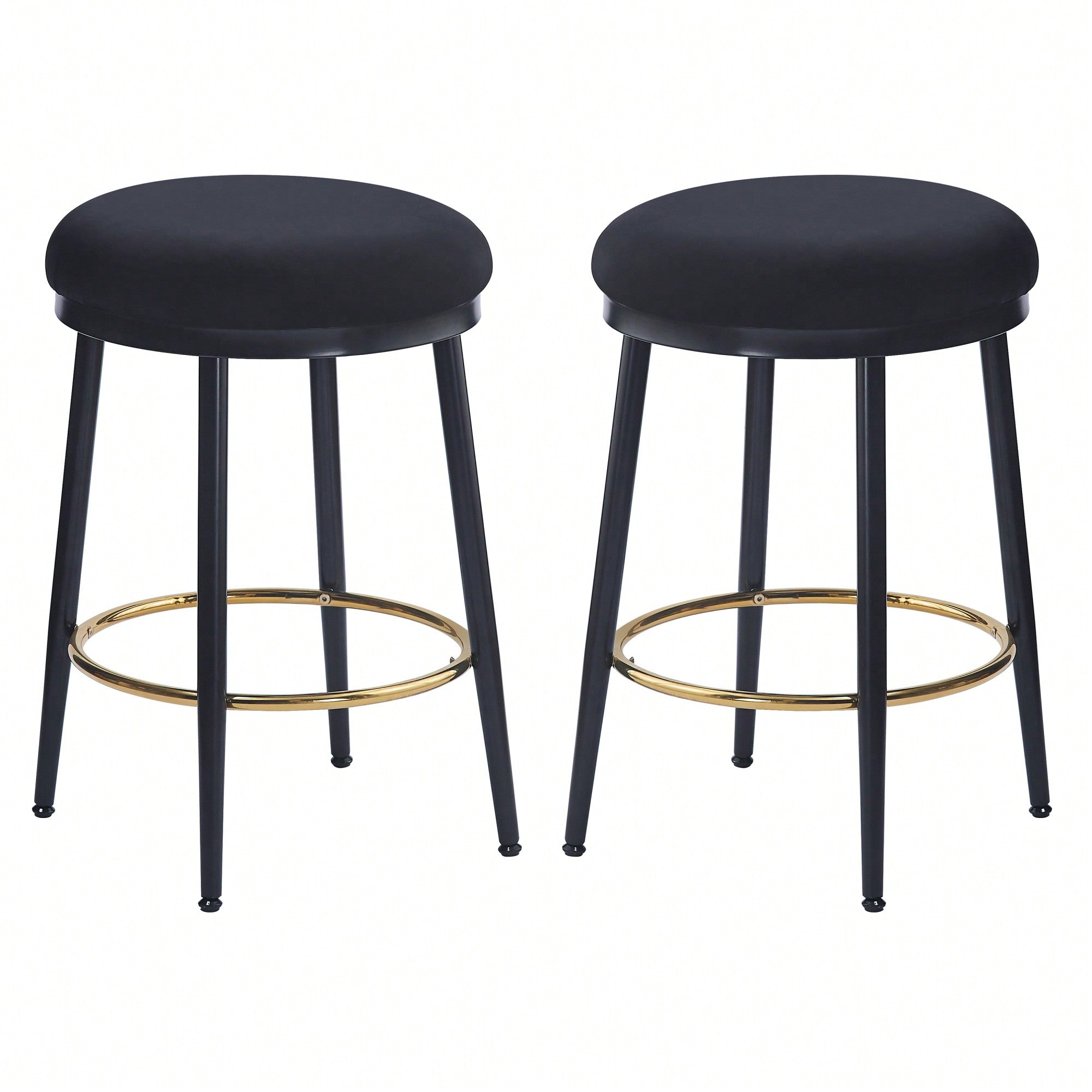 Stylish Velvet Round Bar Stools Set of 2 with Back for Dining Room Kitchen Island Comfortable Seating Durable Metal Frame Easy Assembly