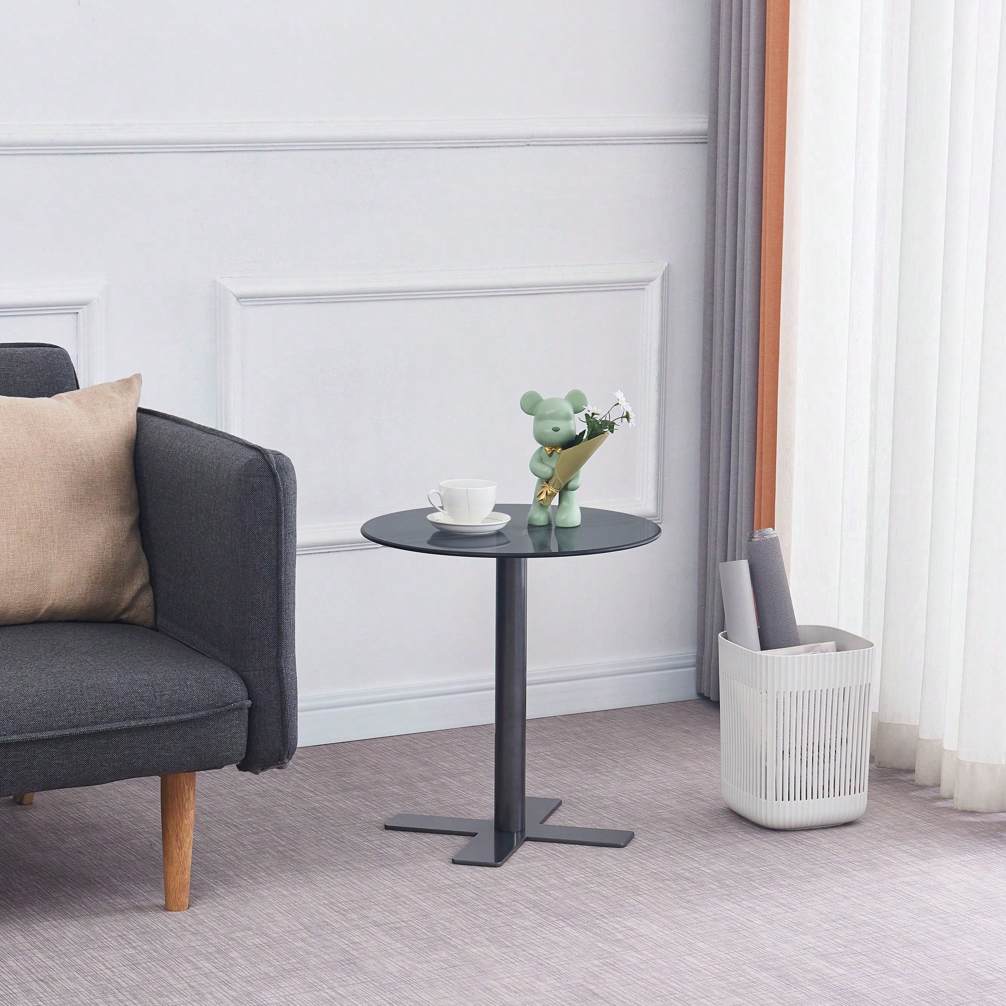 Tempered Glass Side Table With Metal Leg: Elegant Design, Transparent/Frosted Glass Layers, 150lbs Load-Bearing Capacity