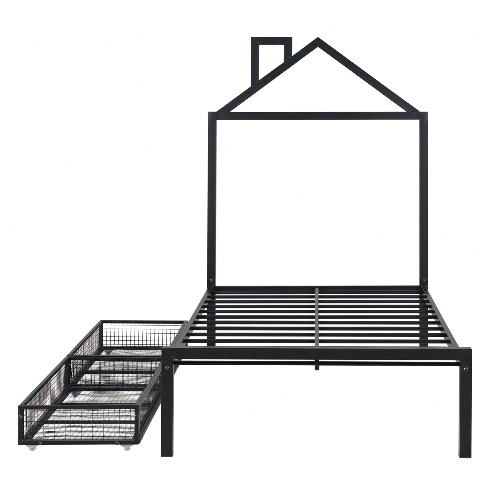 Twin Metal Platform Bed With 2 Drawers, House-Shaped Headboard Design