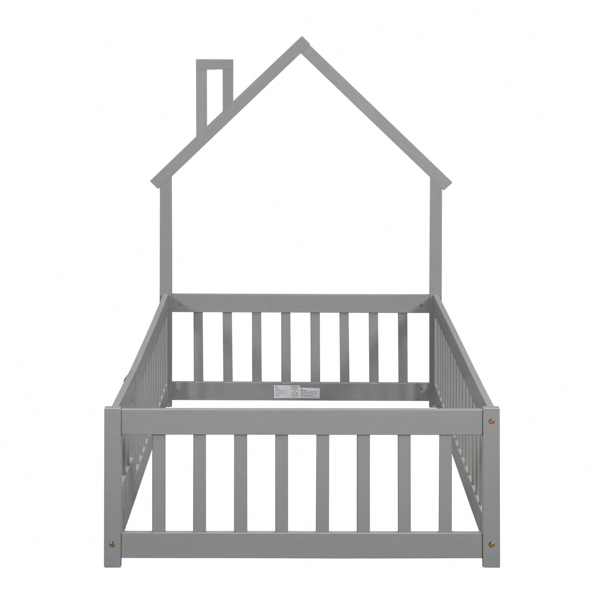 Twin House-Shaped Roof Headboard Floor Bed In Grey Without Slats