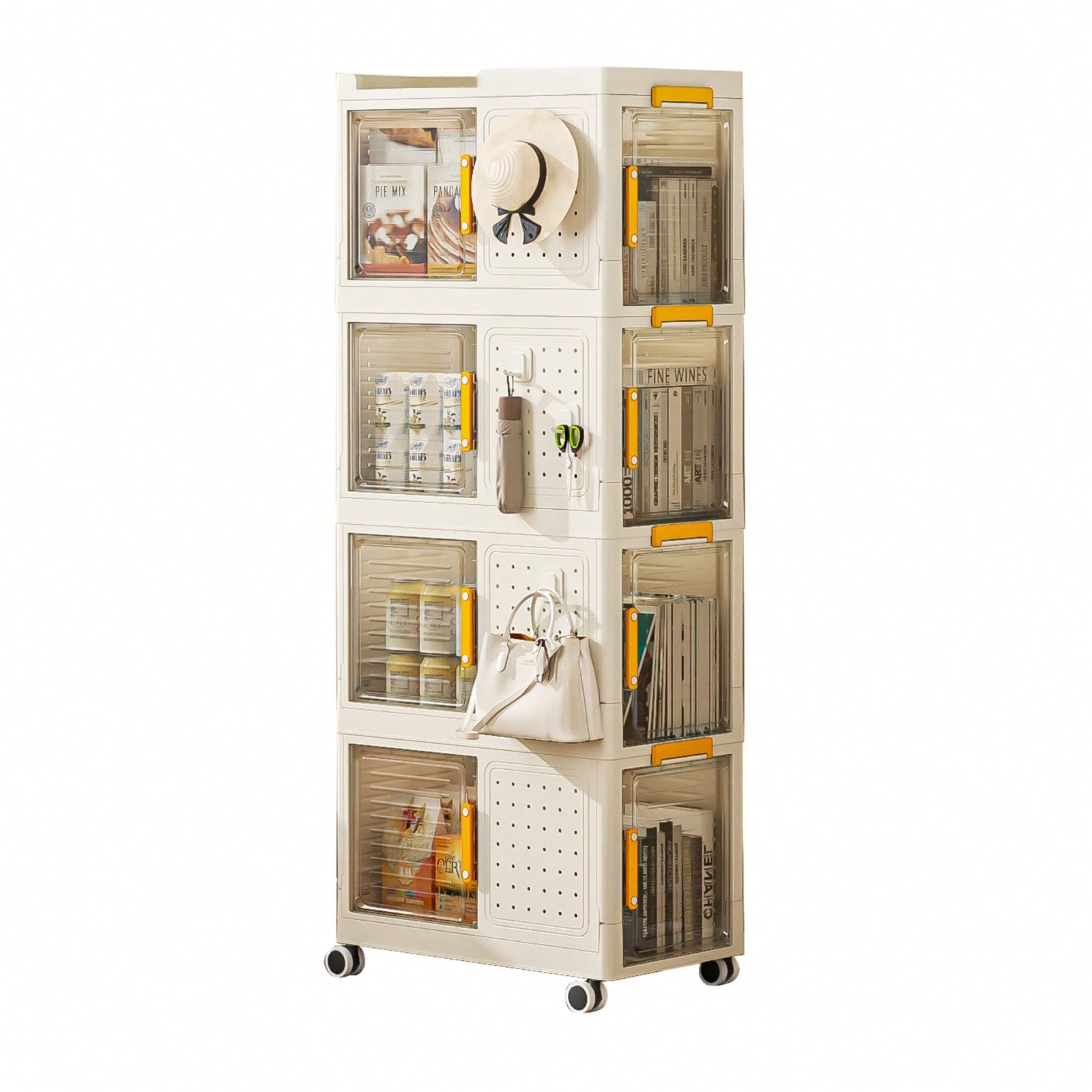 Regular price $102.99 USDSale price $102.99 USD Regular priceUnit price per$190.99 USDSale Sold out1.Maximize Storage Space: This 4-tier rolling storage bookcase features 8 opening doors with clear panels, 4 storage bins, 4 pegboards, and 8 hooks, offering ample storage...