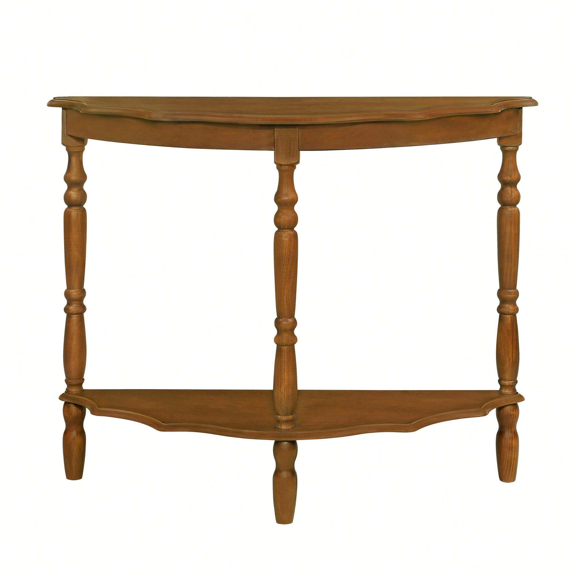 42 Inch Retro Half-Moon Console Table With Cloud Design Top And Open Shelf Solid Wood Frame And Legs In Brown