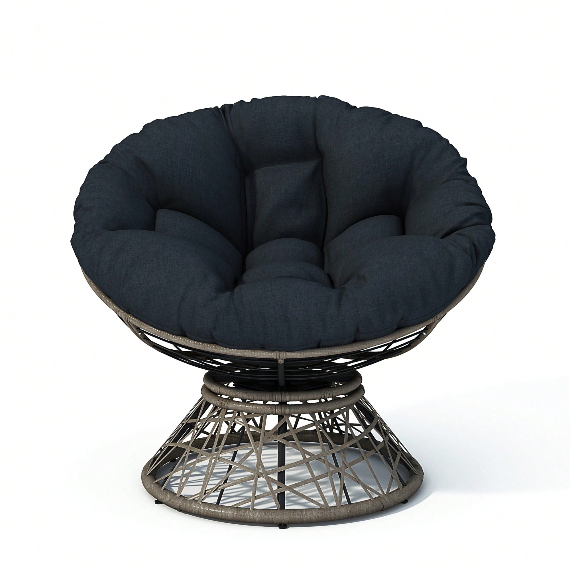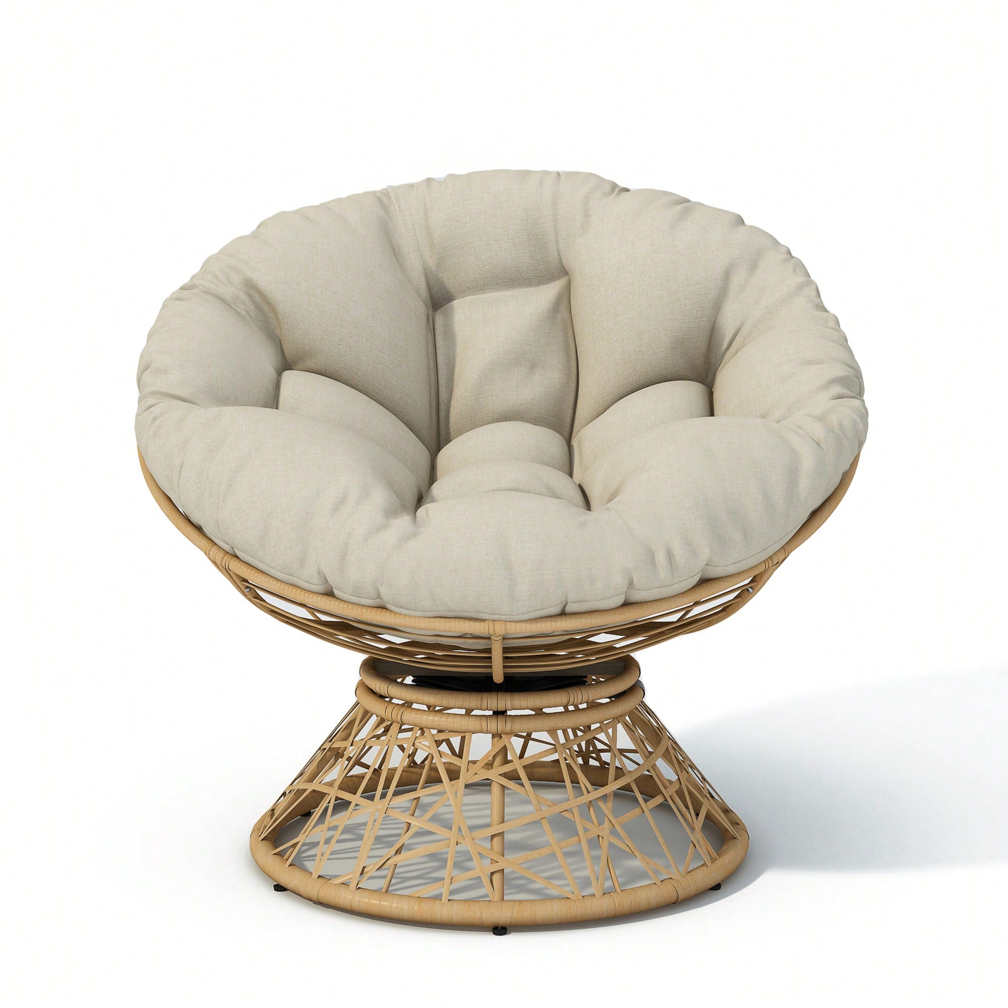 40 Inch Ergonomic Wicker Papasan Chair With Plush Thick Cushion 360 Degree Swivel High Capacity Iron Frame For Living Room Bedroom Lounge Natural Base Available In 2 Colors