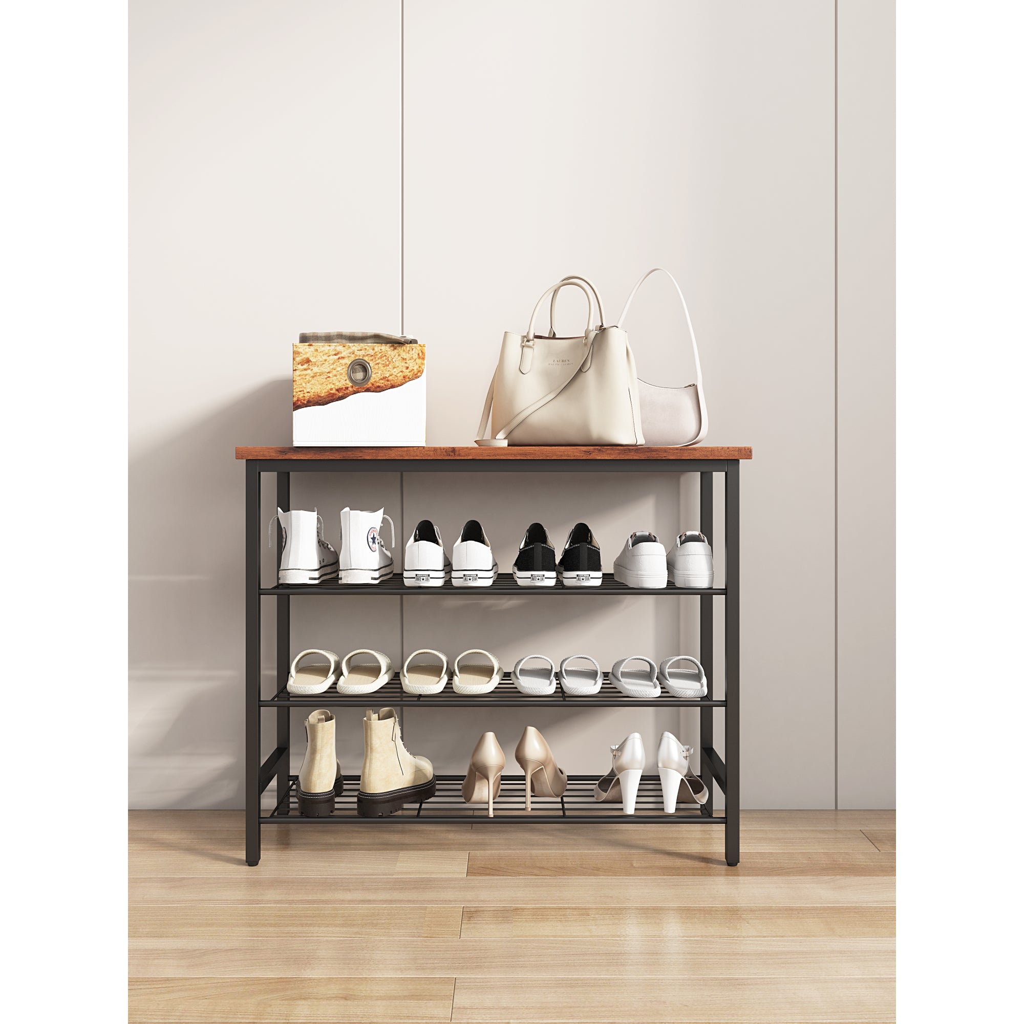 4-Tier Metal Shoe Rack - Modern Multifunctional Storage Shelf with MDF Top Board, Space-Saving Organizer for Home or Office