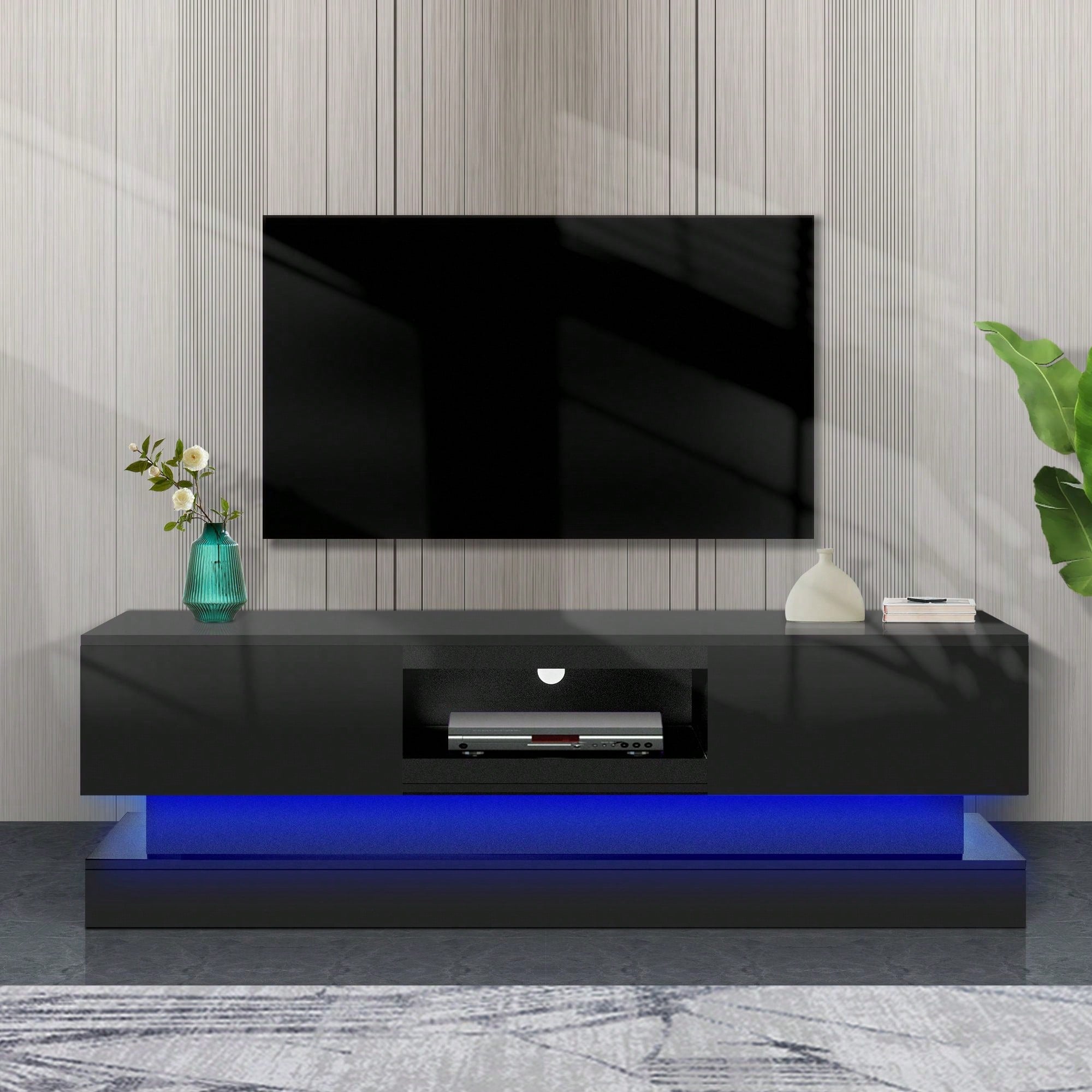 51.18" Modern TV Stand With LED Lights, High Glossy Front TV Cabinet, Can Be Assembled In Lounge Room, Living Room Or Bedroom