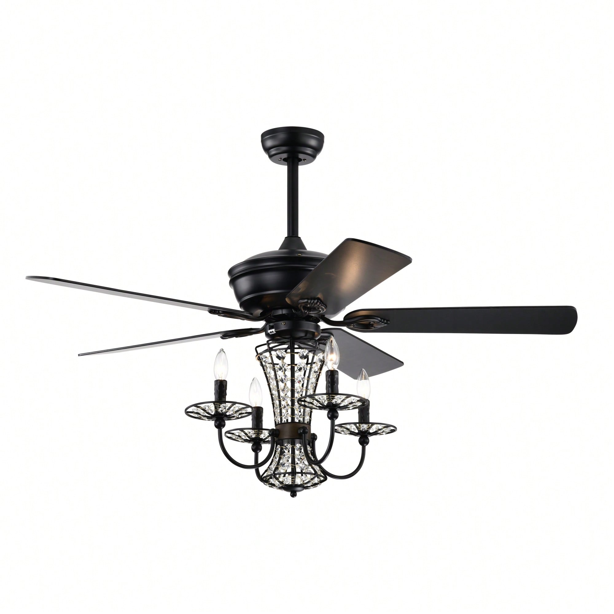 52 Inch Modern Crystal Chandelier Ceiling Fan With Remote Control And Dual Finish Reversible Blades For Living Room, Matte Black