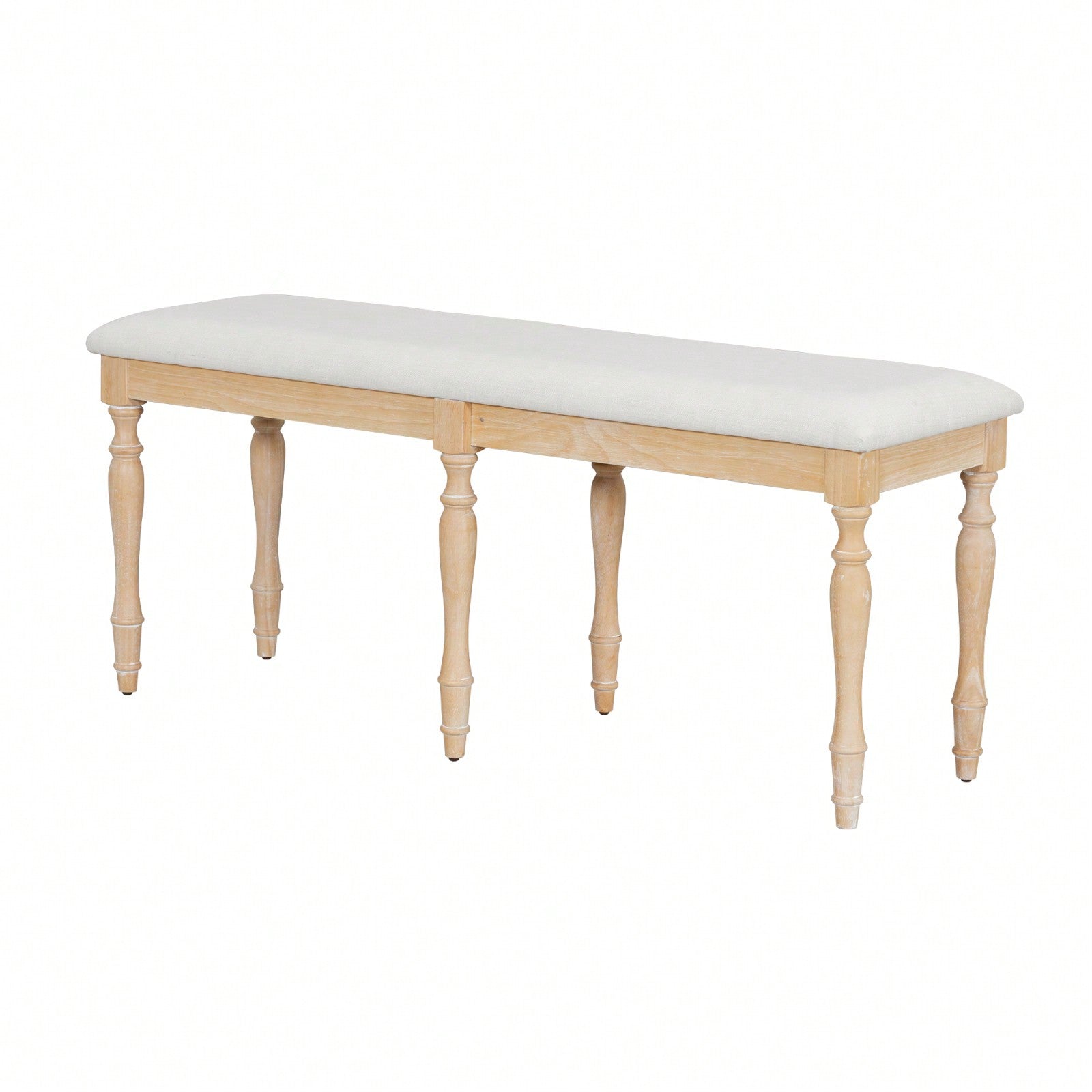 50.4 Inch Vintage Solid Wood Dining Bench with Upholstered Linen and Turned Legs 330lbs Capacity for Kitchen and Dining Room