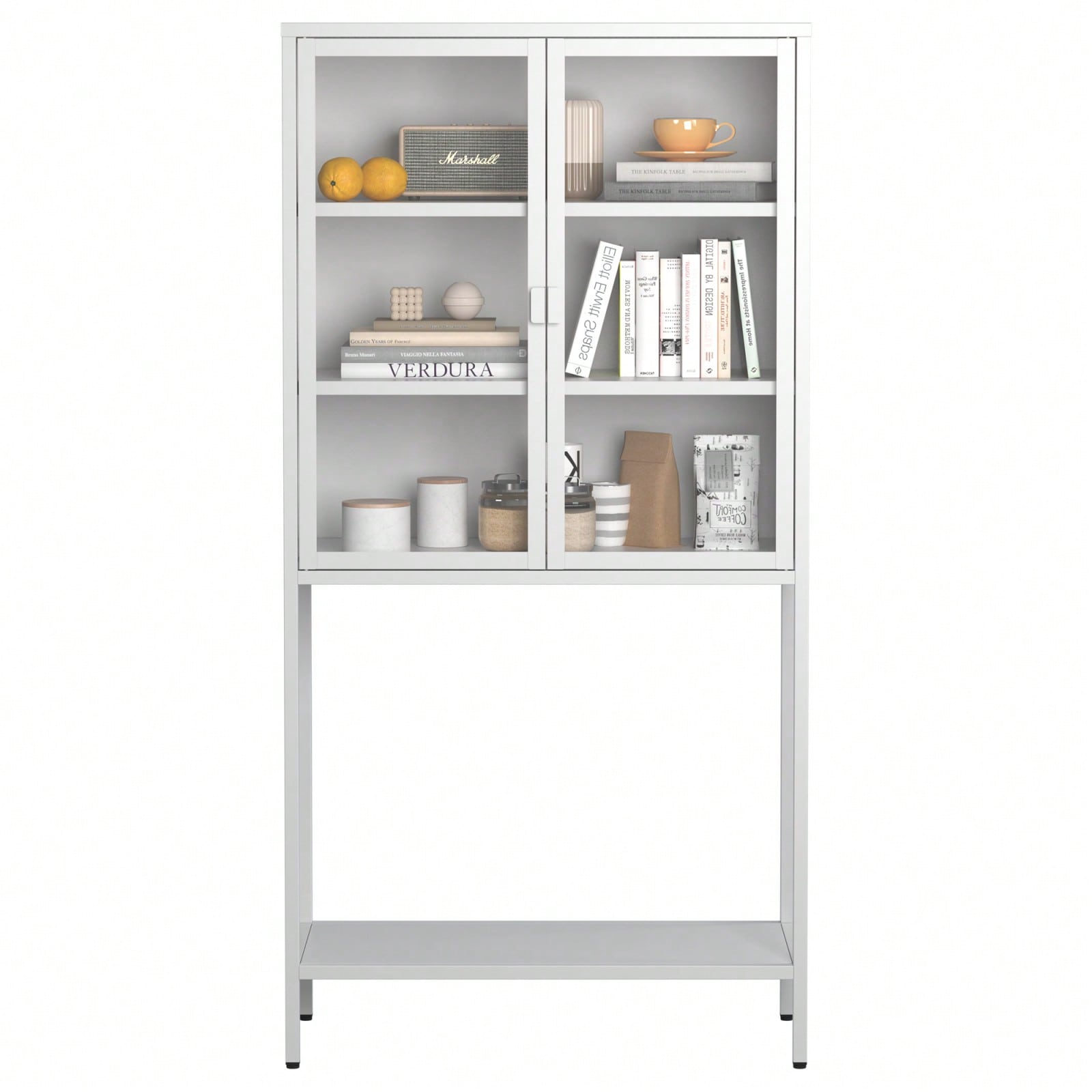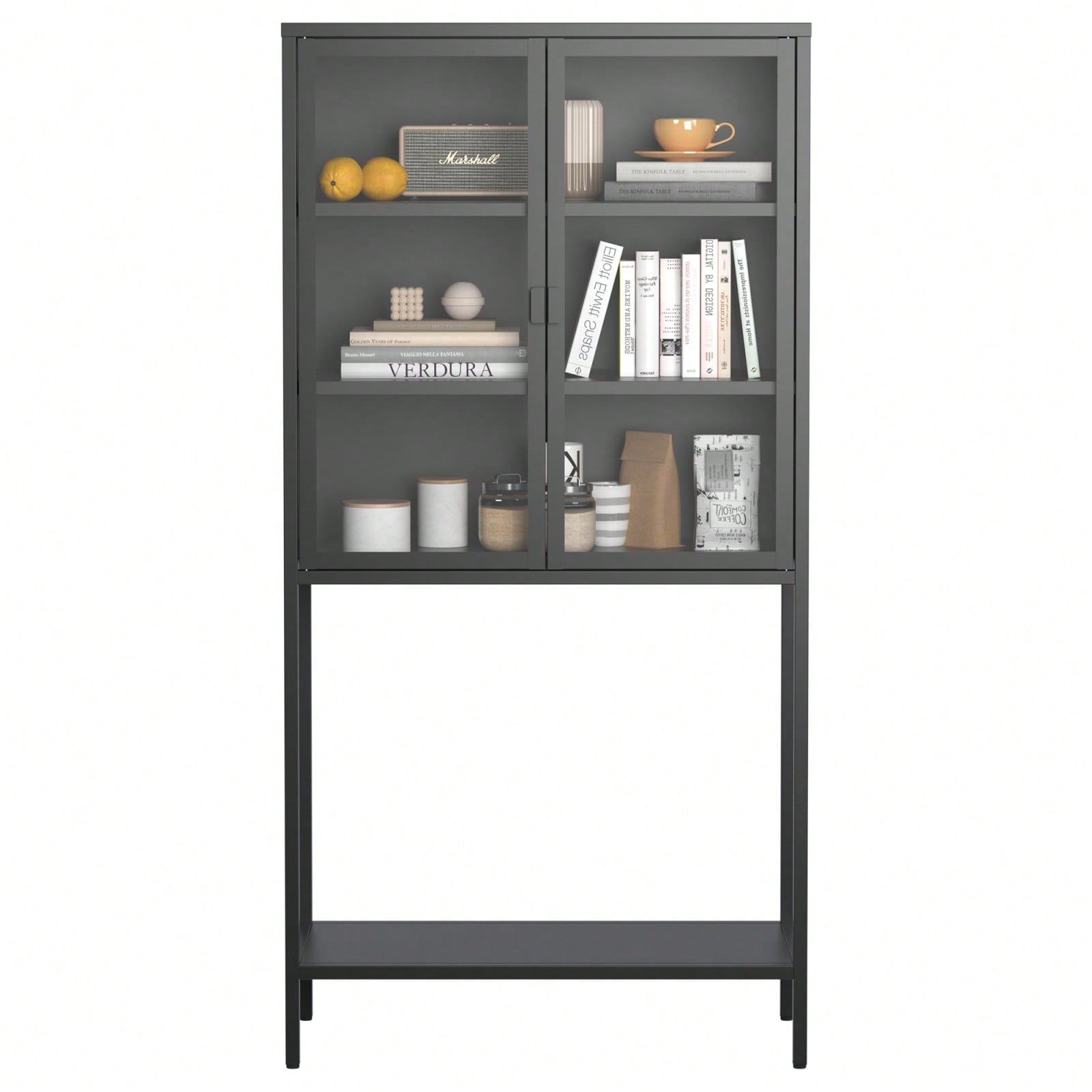 59 Inch Tall Metal Storage Cabinet with Glass Doors Adjustable Shelves Modern Display Bookcase for Home Office Living Room Kitchen
