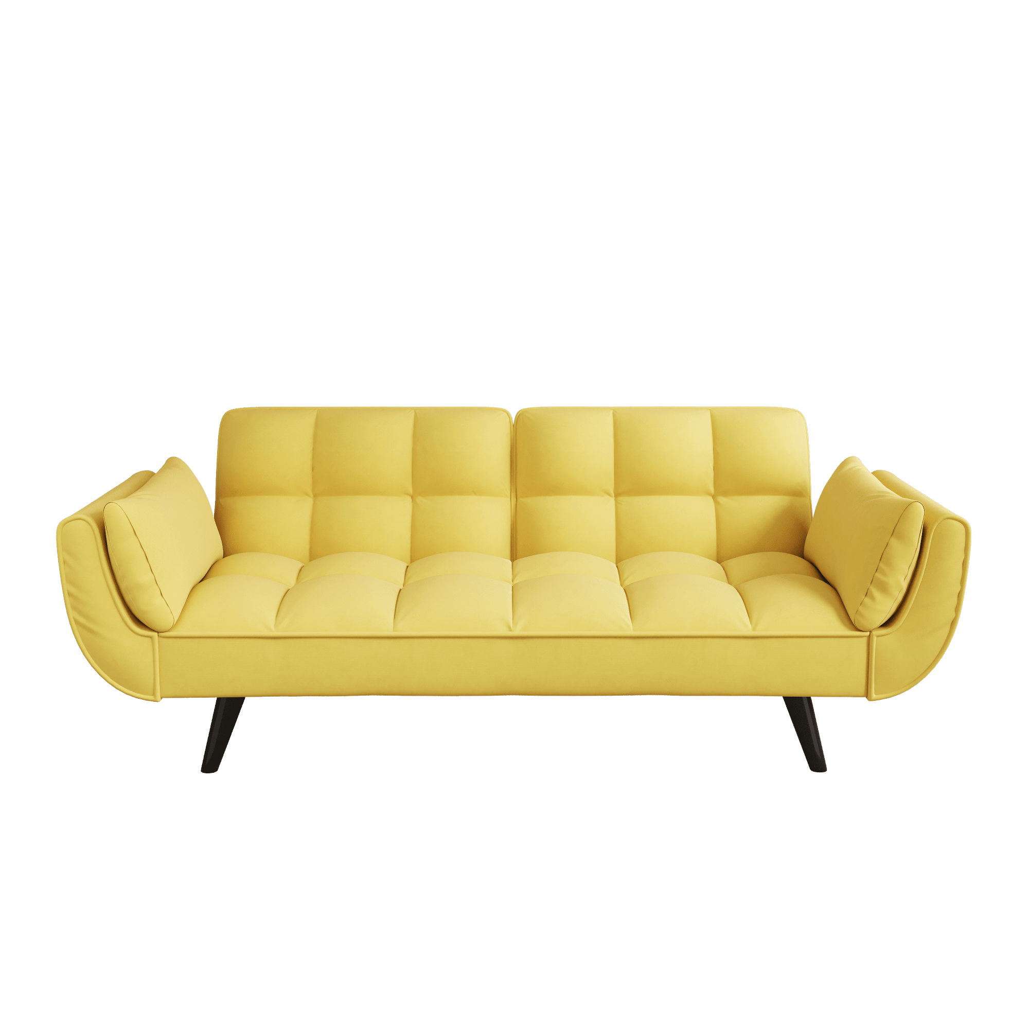 57 Inch Yellow Sofa With Soft Armrests And Throw Pillows For Comfortable Small Space Living In Apartment Or Bedroom