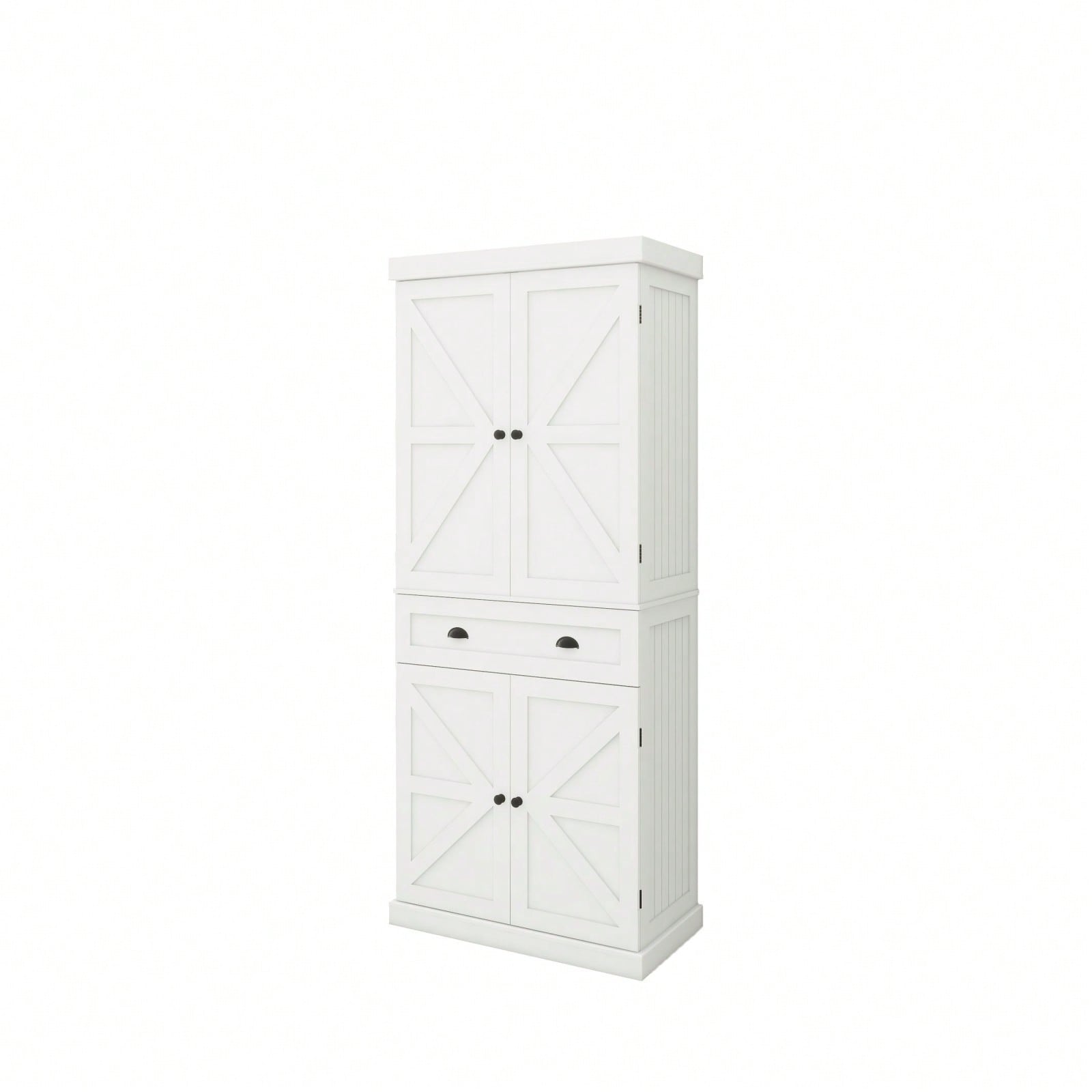 71 Inch Freestanding Kitchen Pantry Cabinet with 4 Doors Drawer and 2 Adjustable Shelves in White Finish for Kitchen Dining Storage