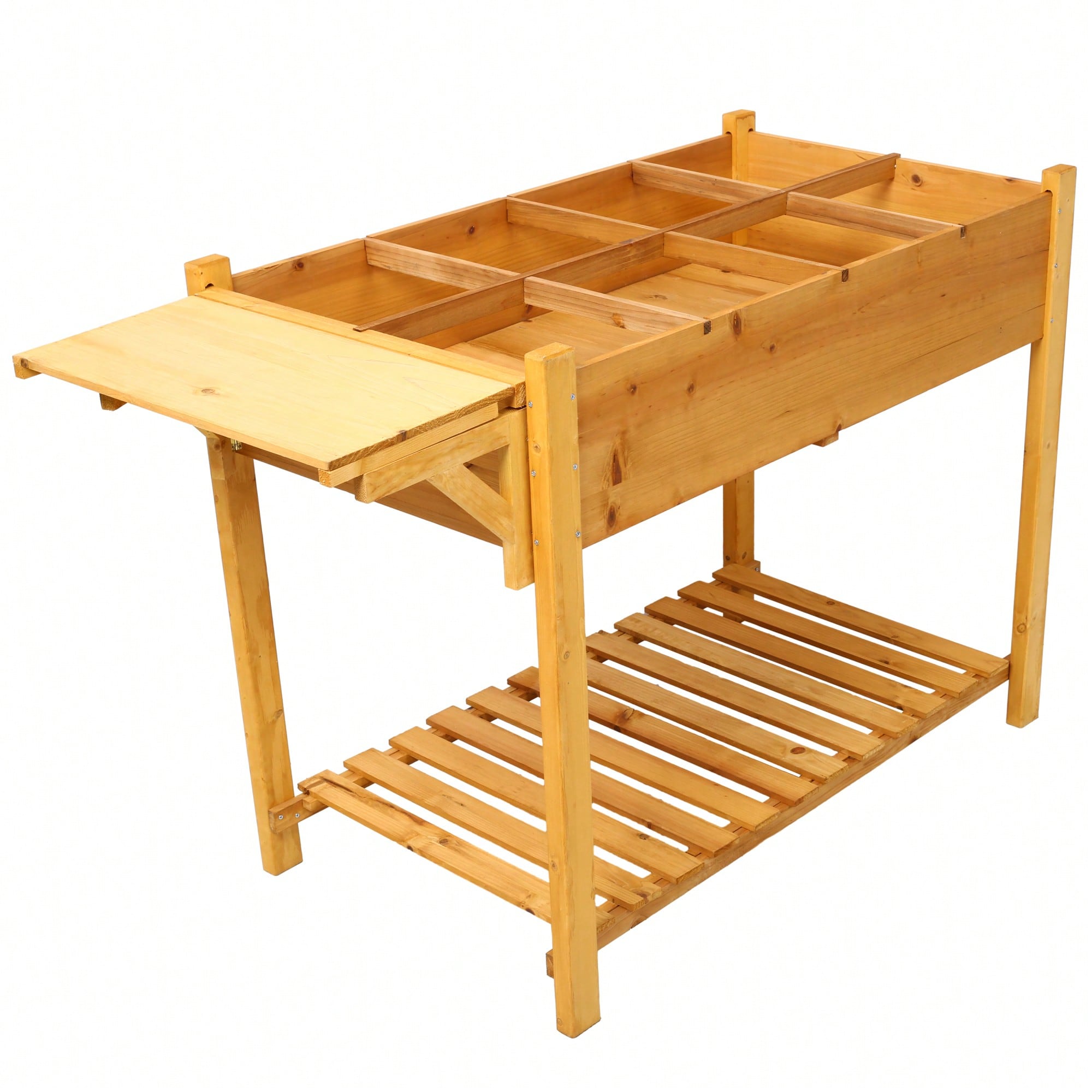 8-Pocket Elevated Wooden Garden Bed With Foldable Side Table And Storage Shelf For Herbs, Vegetables, And Flowers