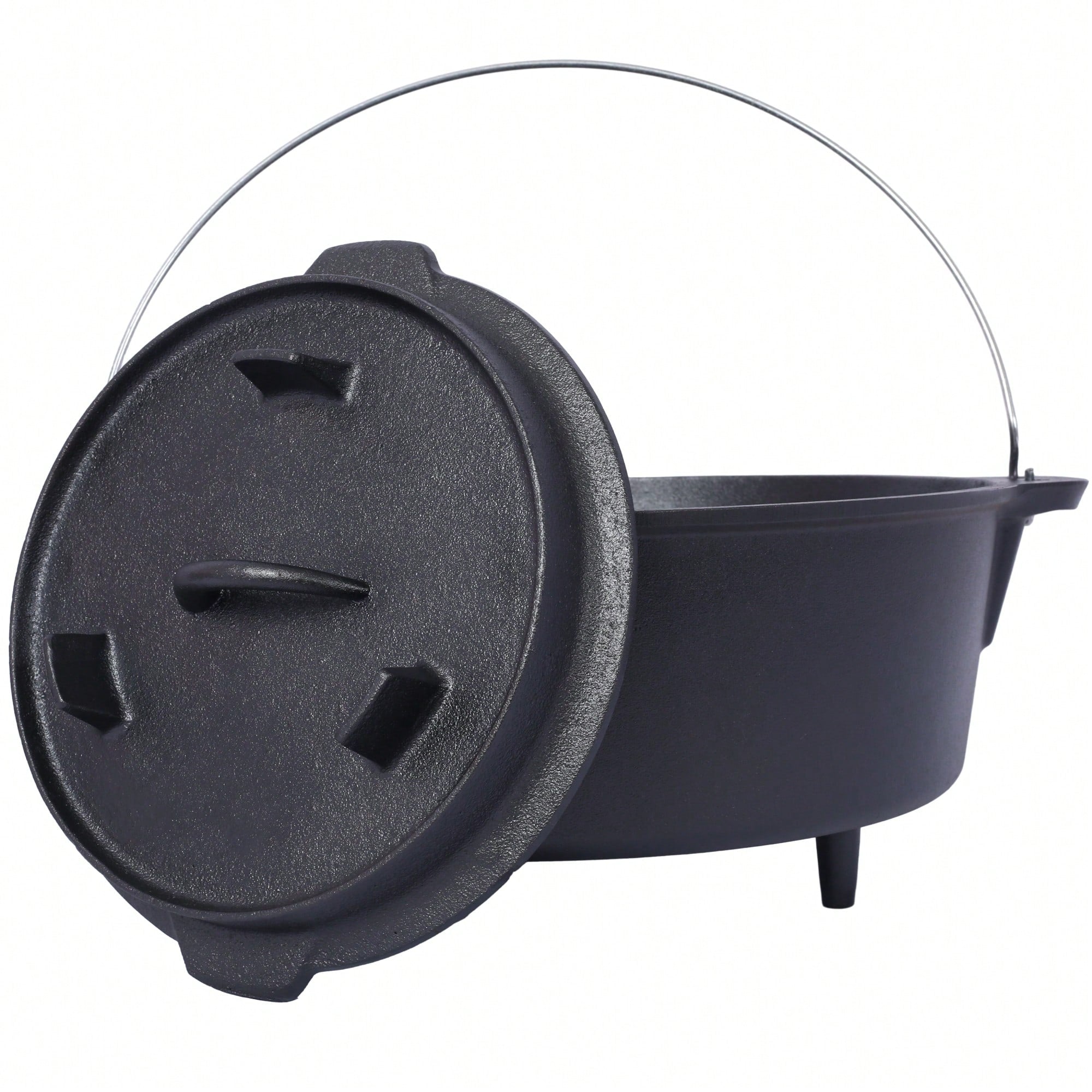 8 Quart Pre-Seasoned Cast Iron Dutch Oven With Skillet Lid For Outdoor Camping BBQ Baking And Campfire Cooking