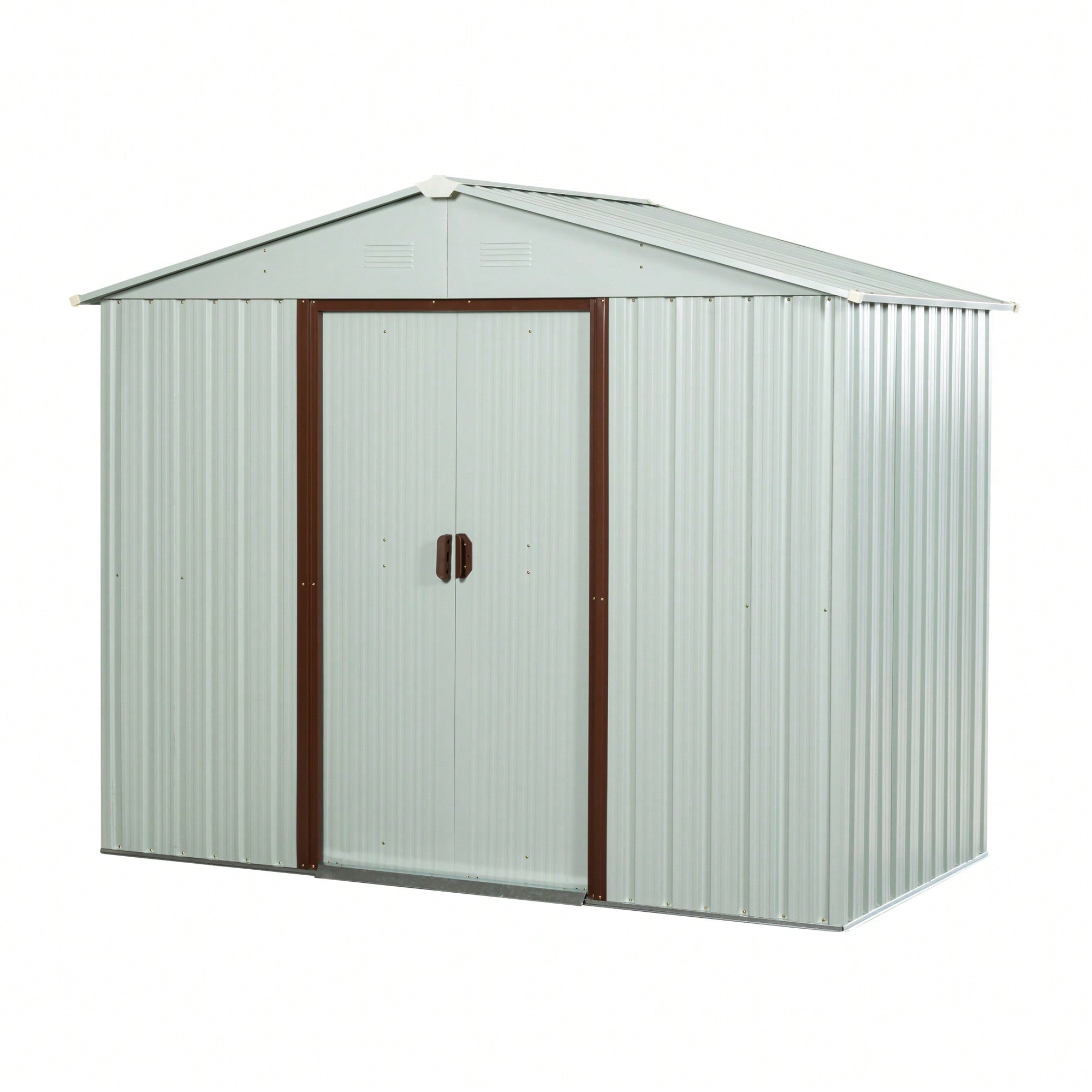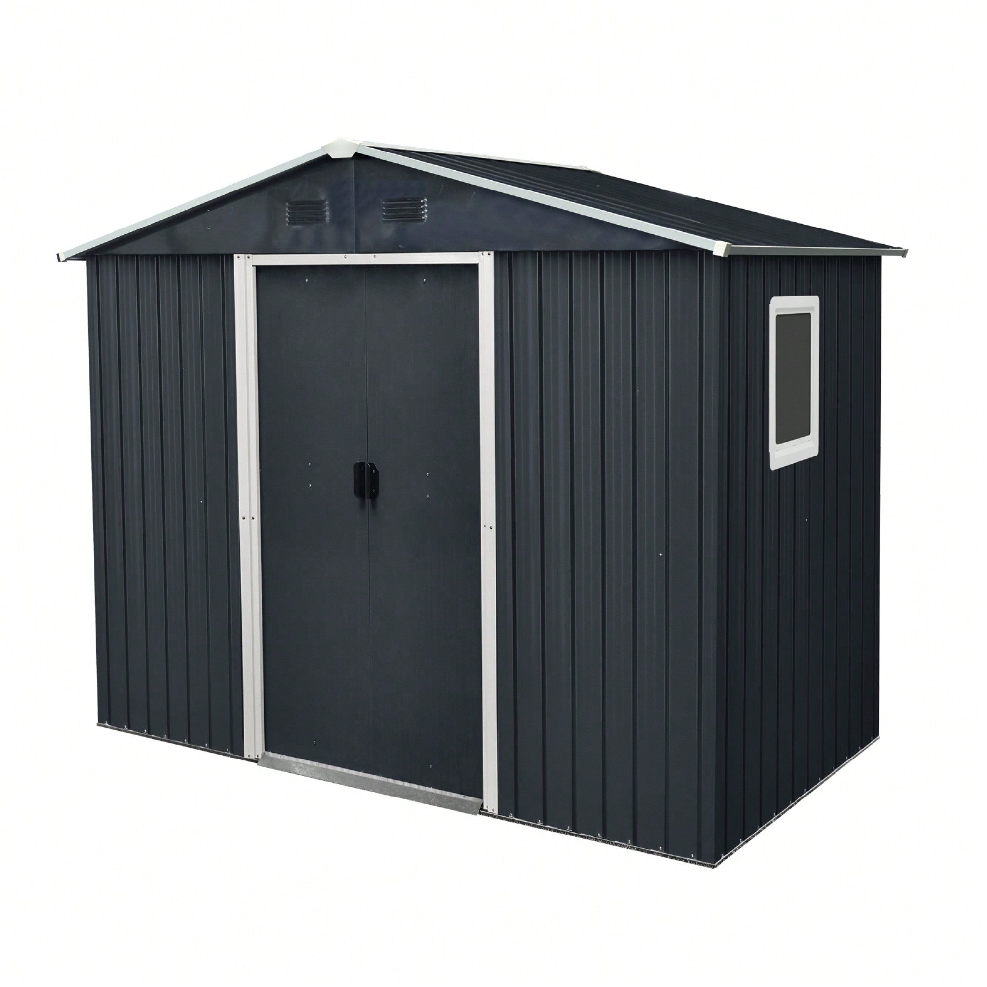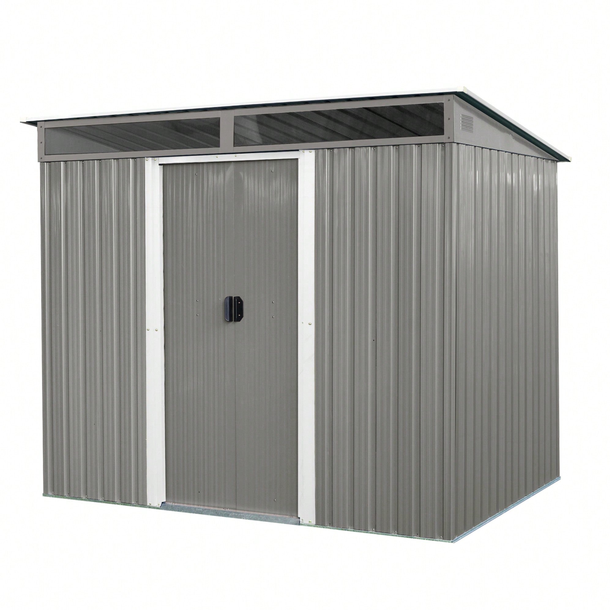 8ft X 6ft Outdoor Metal Storage Shed With Lockable Sliding Doors And Transparent Panel For Garden And Lawn Use Gray