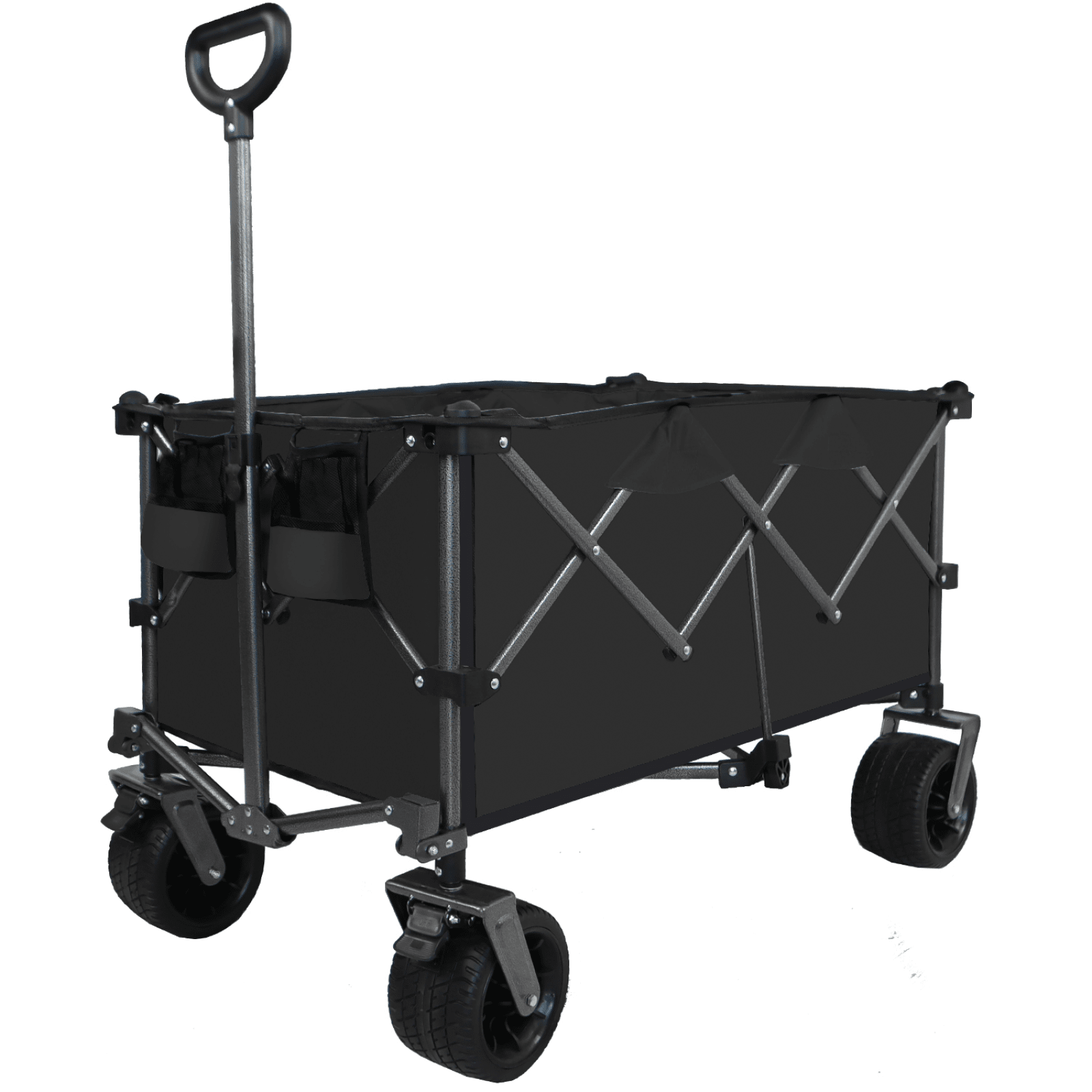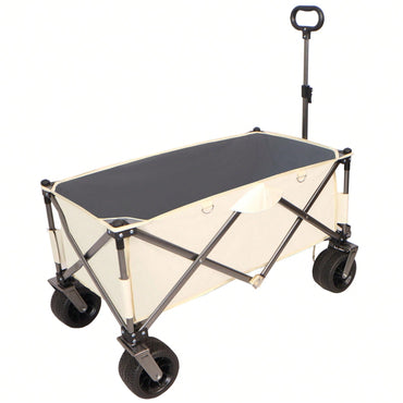 All-Terrain Folding Utility Wagon Cart with Adjustable Handle and Cup Holders for Camping Beach Shopping Supports 225lbs
