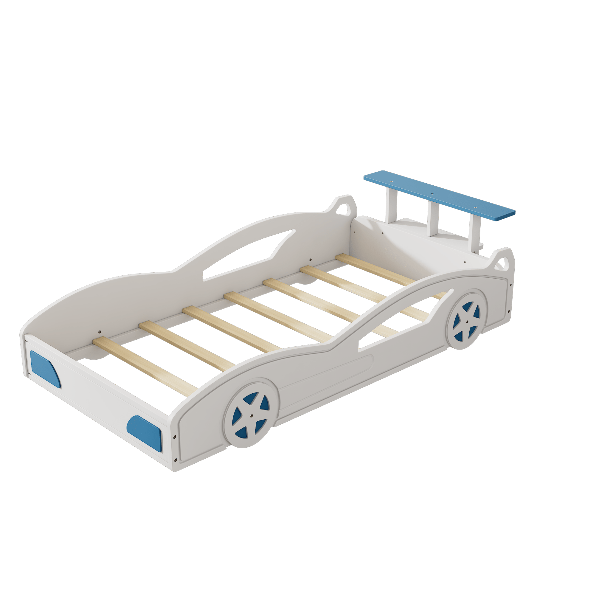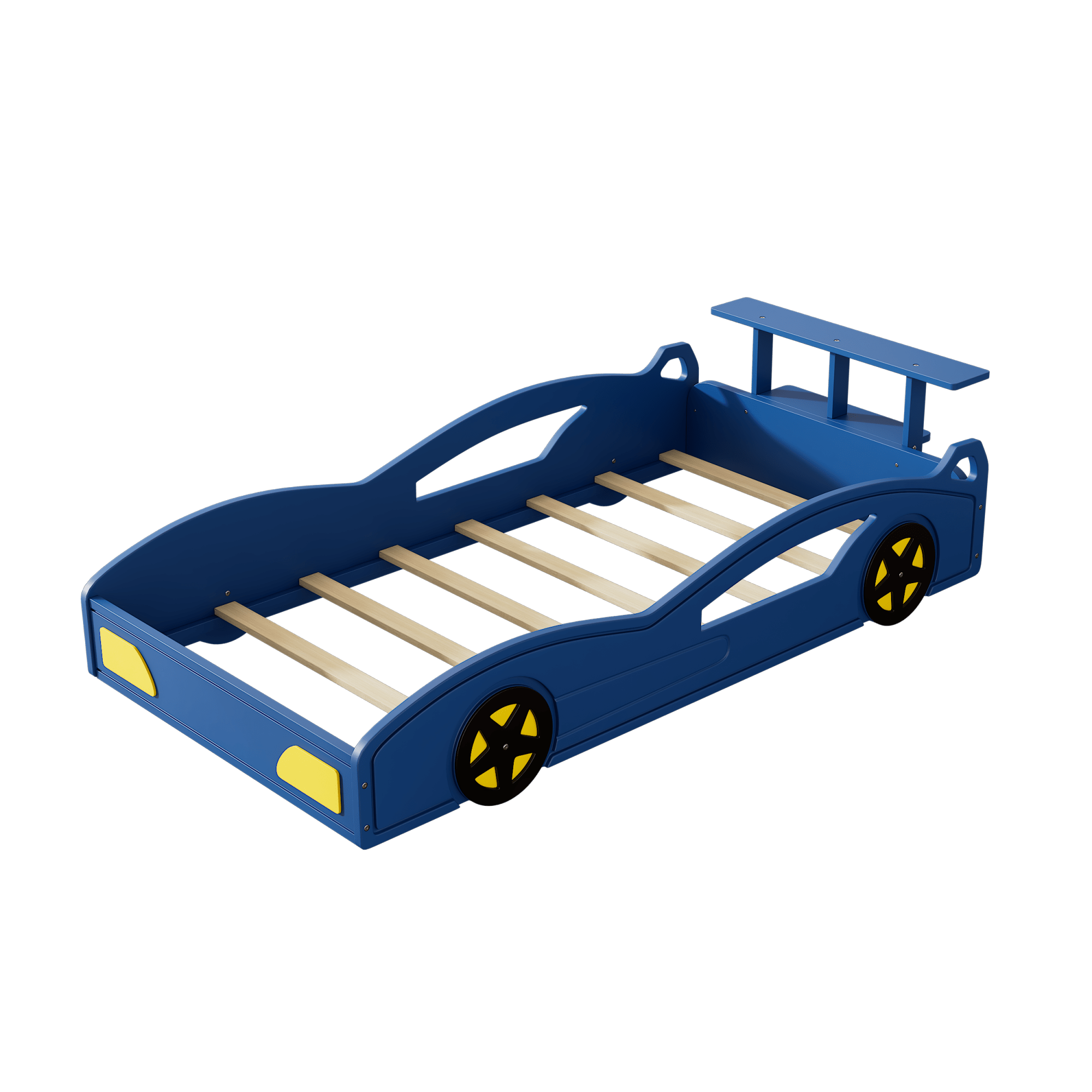 Car-Shaped Twin Bed With Wheels - Colorful Wooden Race Car Design For Teens