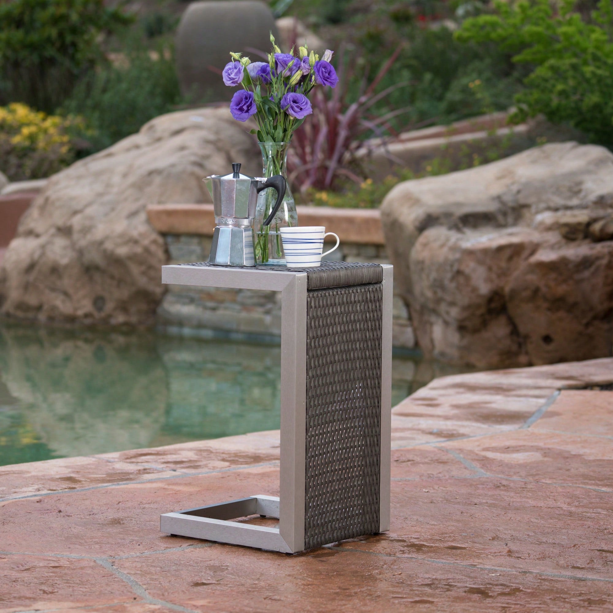 C-Shaped Wicker Side Table For Living Room Or Patio - Versatile And Stylish Accent Furniture