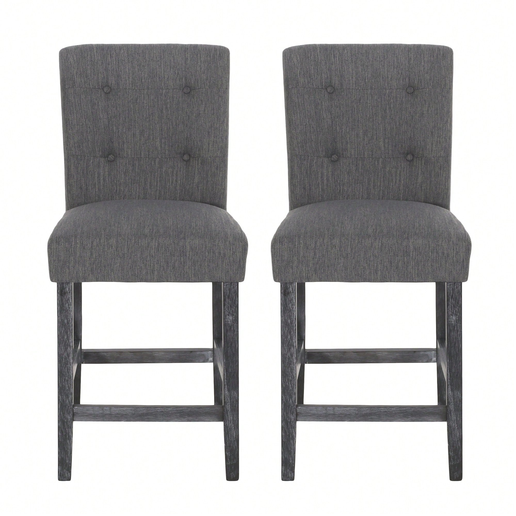 Charcoal Fabric Button Tufted Counter Stools Set Of 2 26 Inch Height Stylish Kitchen Seating