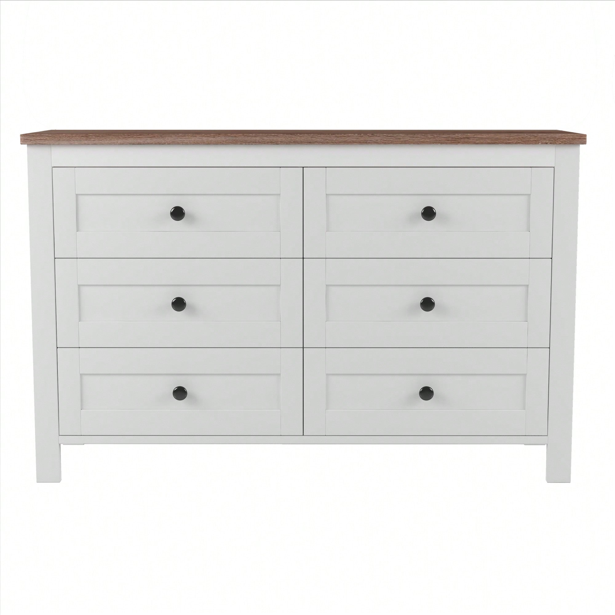 Charming Retro Farmhouse Wooden Dresser With 6 Drawers - Stylish Bedroom Storage Cabinet In White And Brown
