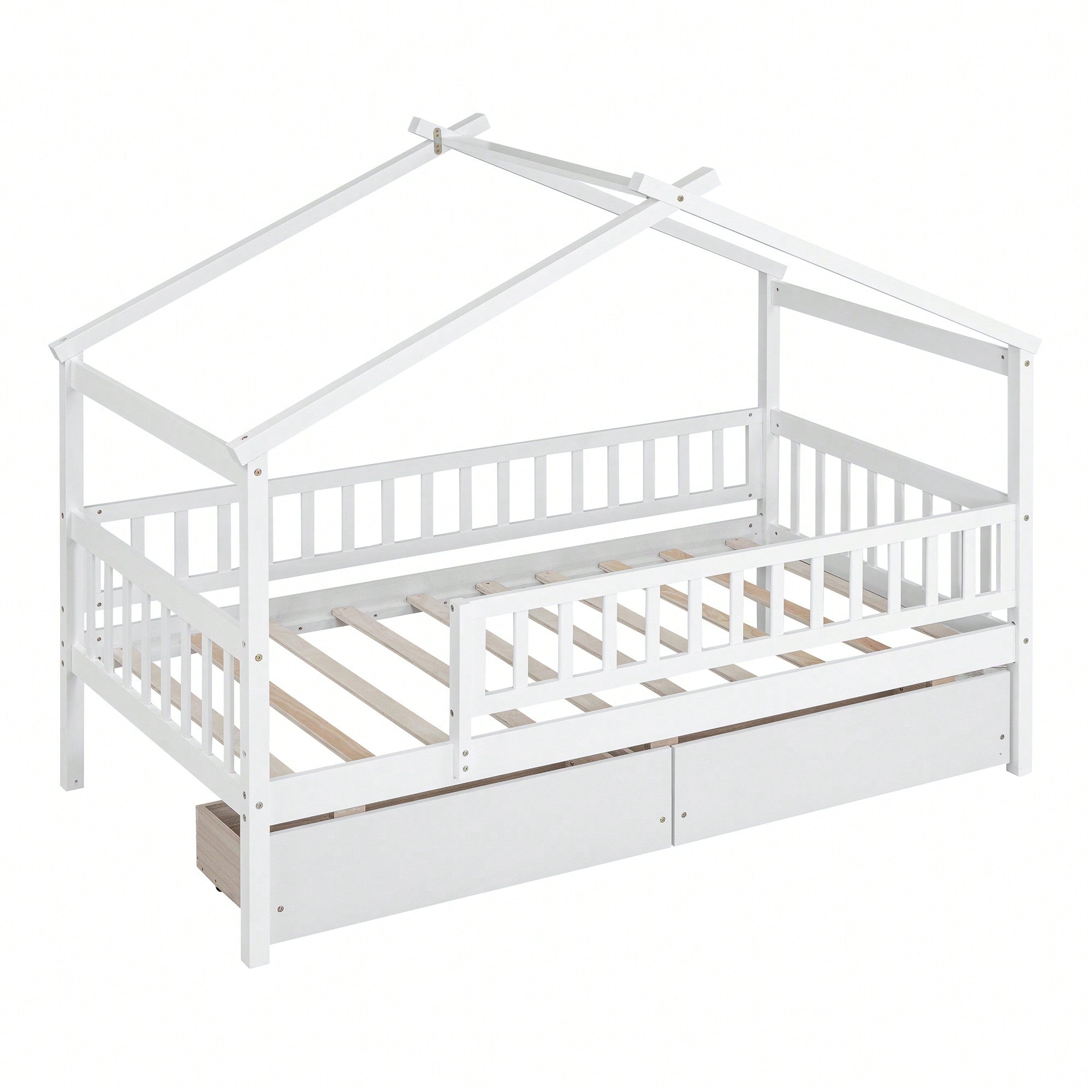 Charming Twin Size White Wooden House Bed With Dual Storage Drawers