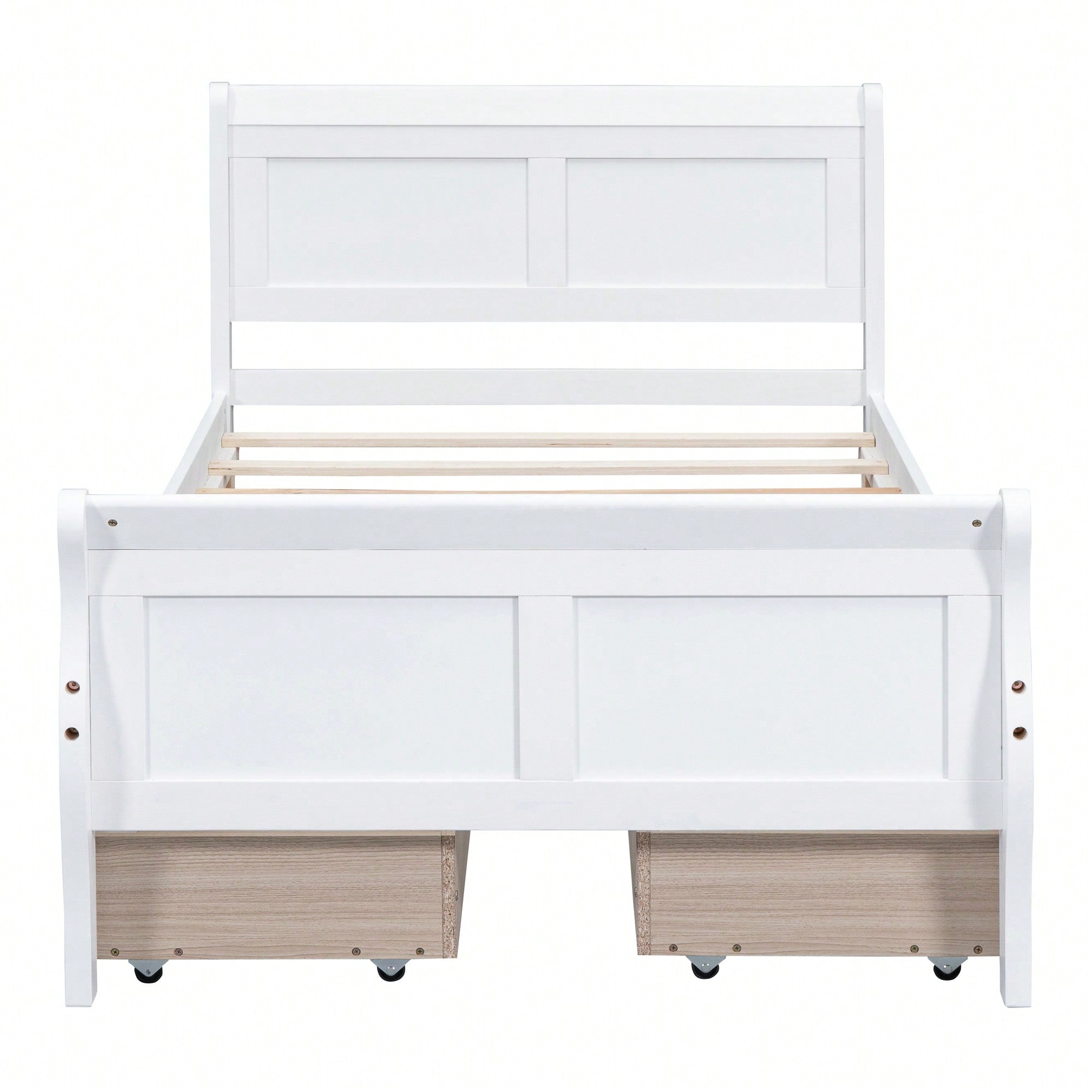 Twin Wood Platform Bed With 4 Storage Drawers And Sleek Headboard And Footboard In White