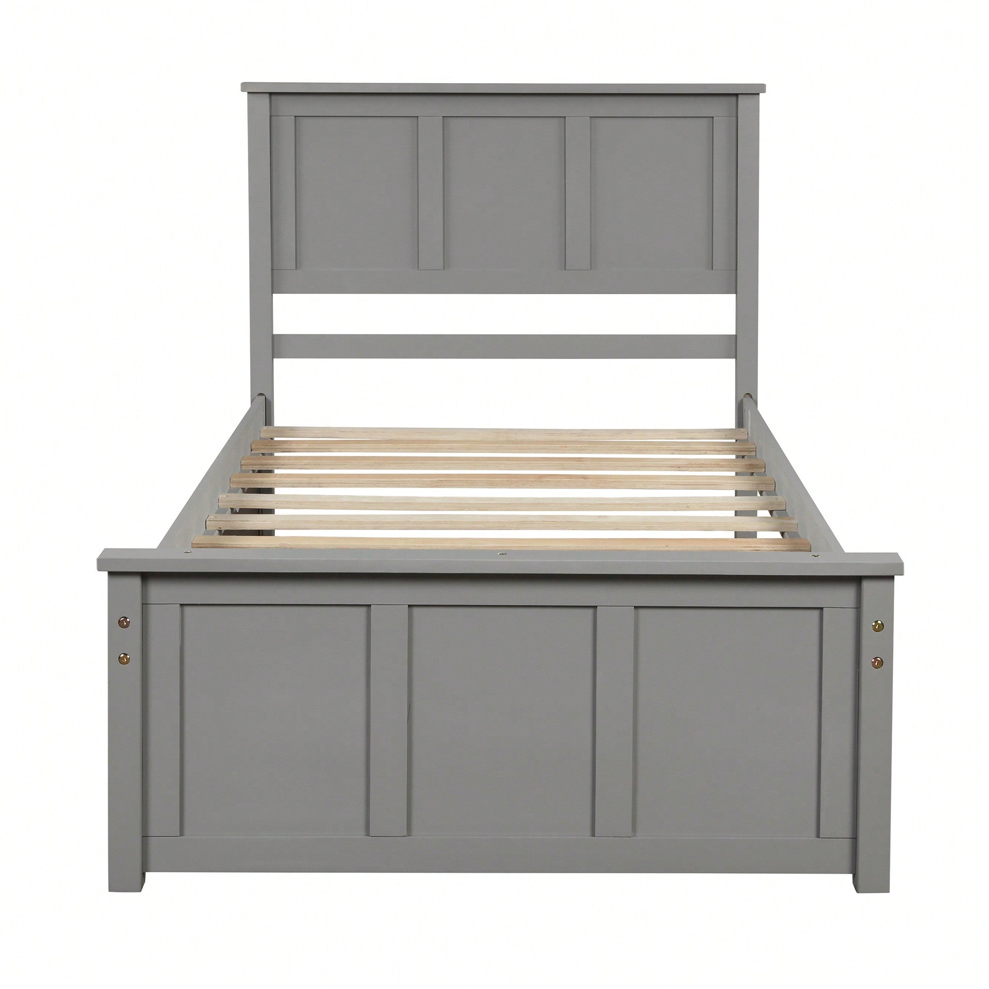 Twin Size Platform Bed With Trundle For Space-Saving Sleep Solutions Grey
