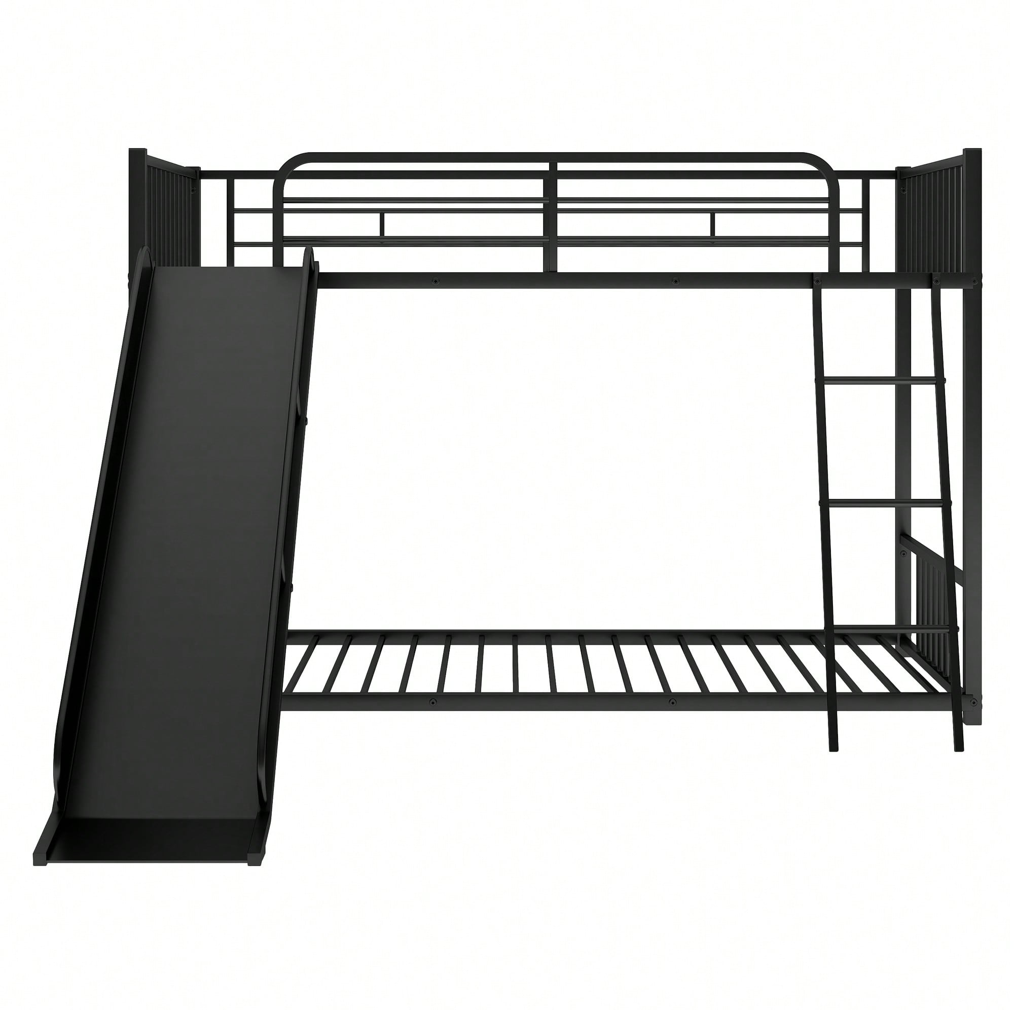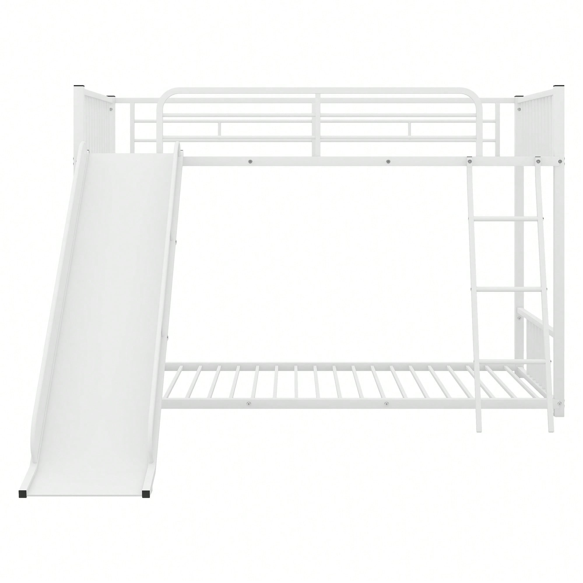 Twin Over Twin Metal Bunk Bed With Slide In White Finish