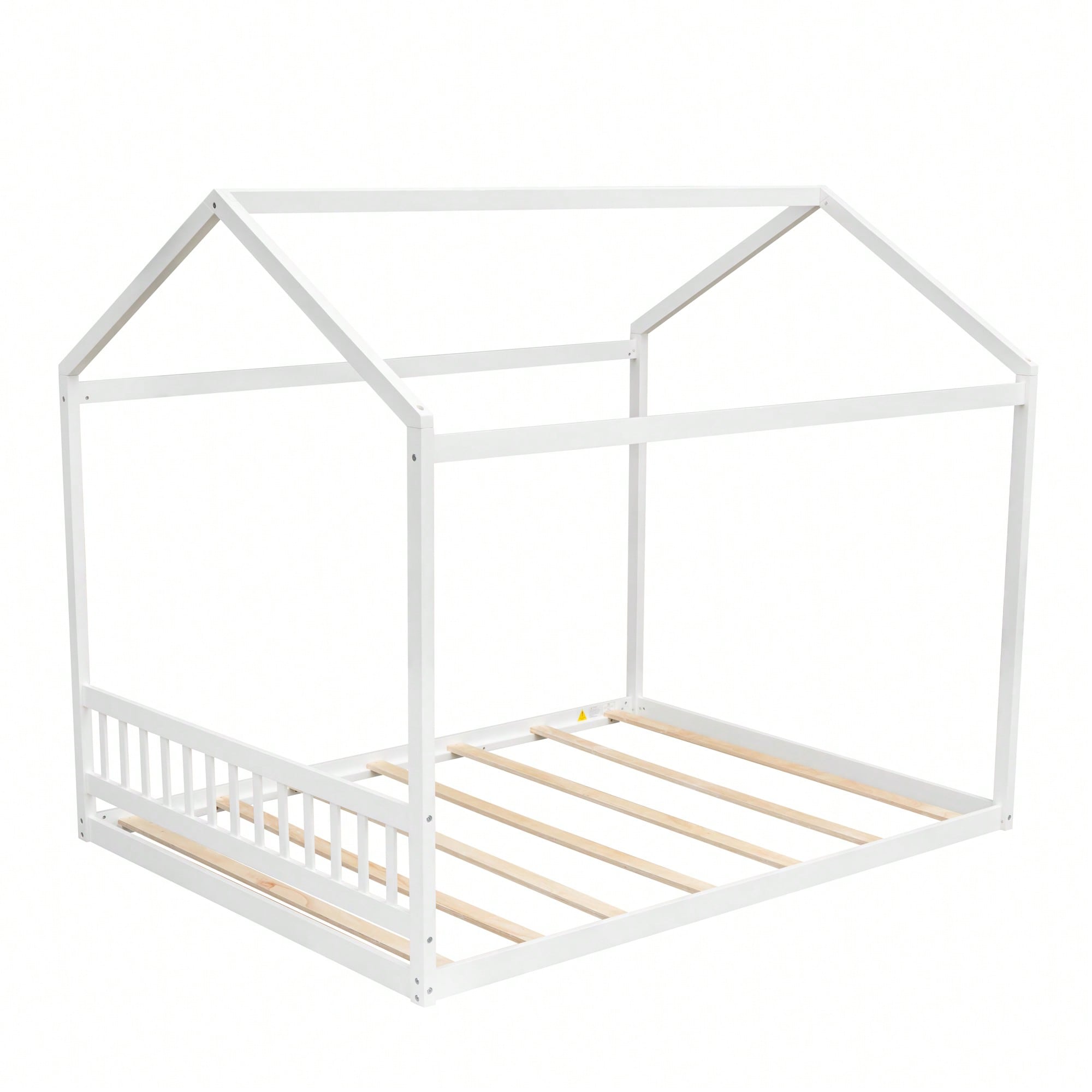 Charming White Full House-Shaped Headboard Floor Bed With Safe Fence Design