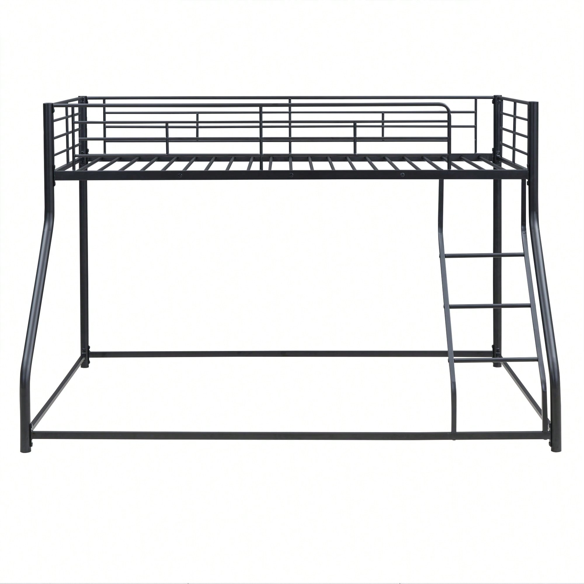Sturdy Full Over Full Metal Bunk Bed Frame with Guard Rails Heavy Duty Space-Saving Design Easy Assembly Black Finish