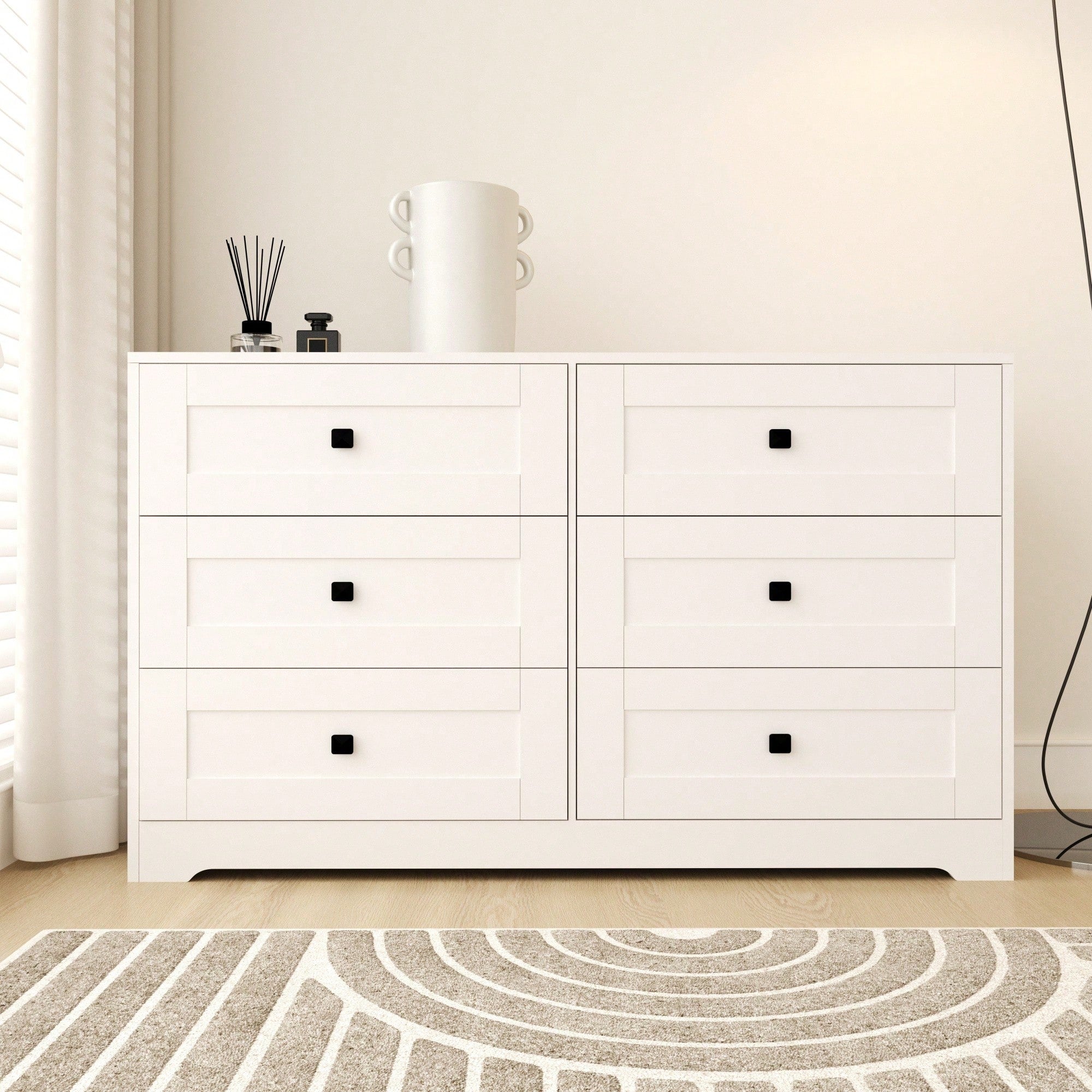 Farmhouse Style Chest Of Drawers With 6 Spacious Drawers For Bedroom Storage White