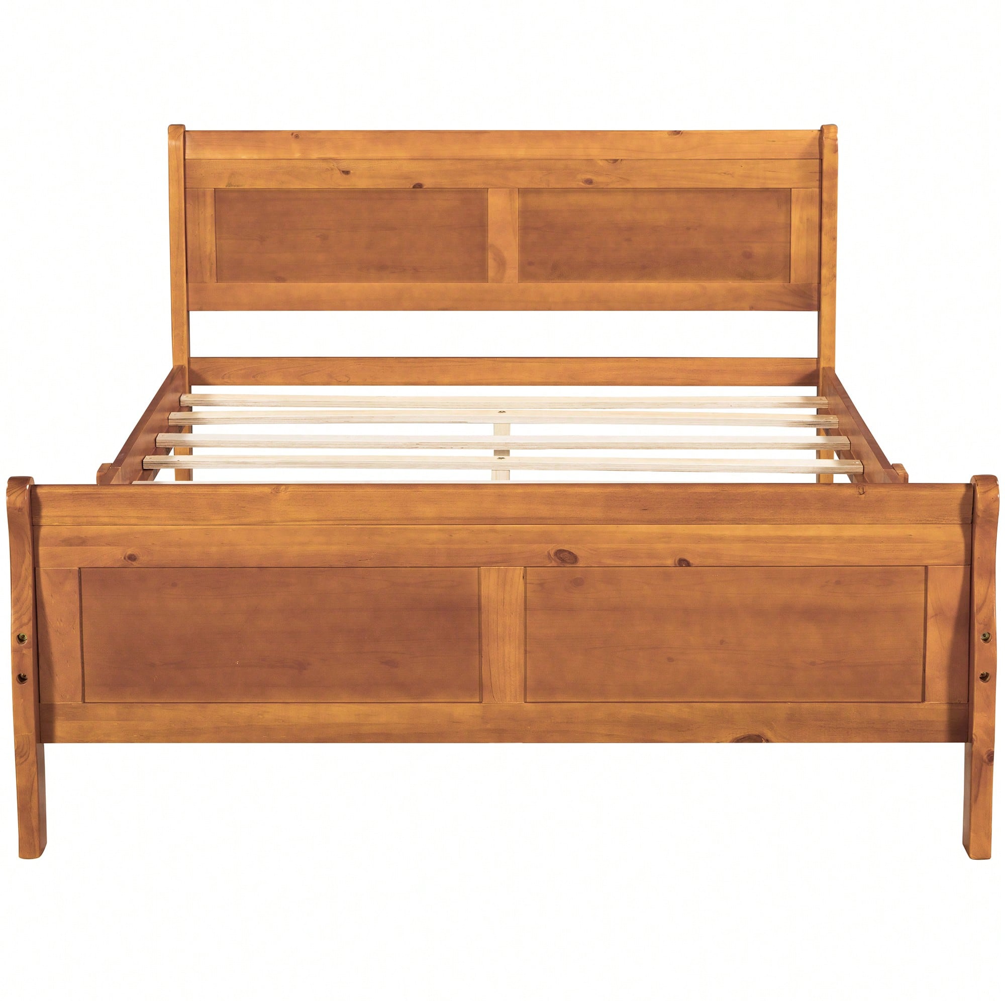Elegant Full Size Wooden Platform Bed With Headboard And Sturdy Slat Support In Oak Finish