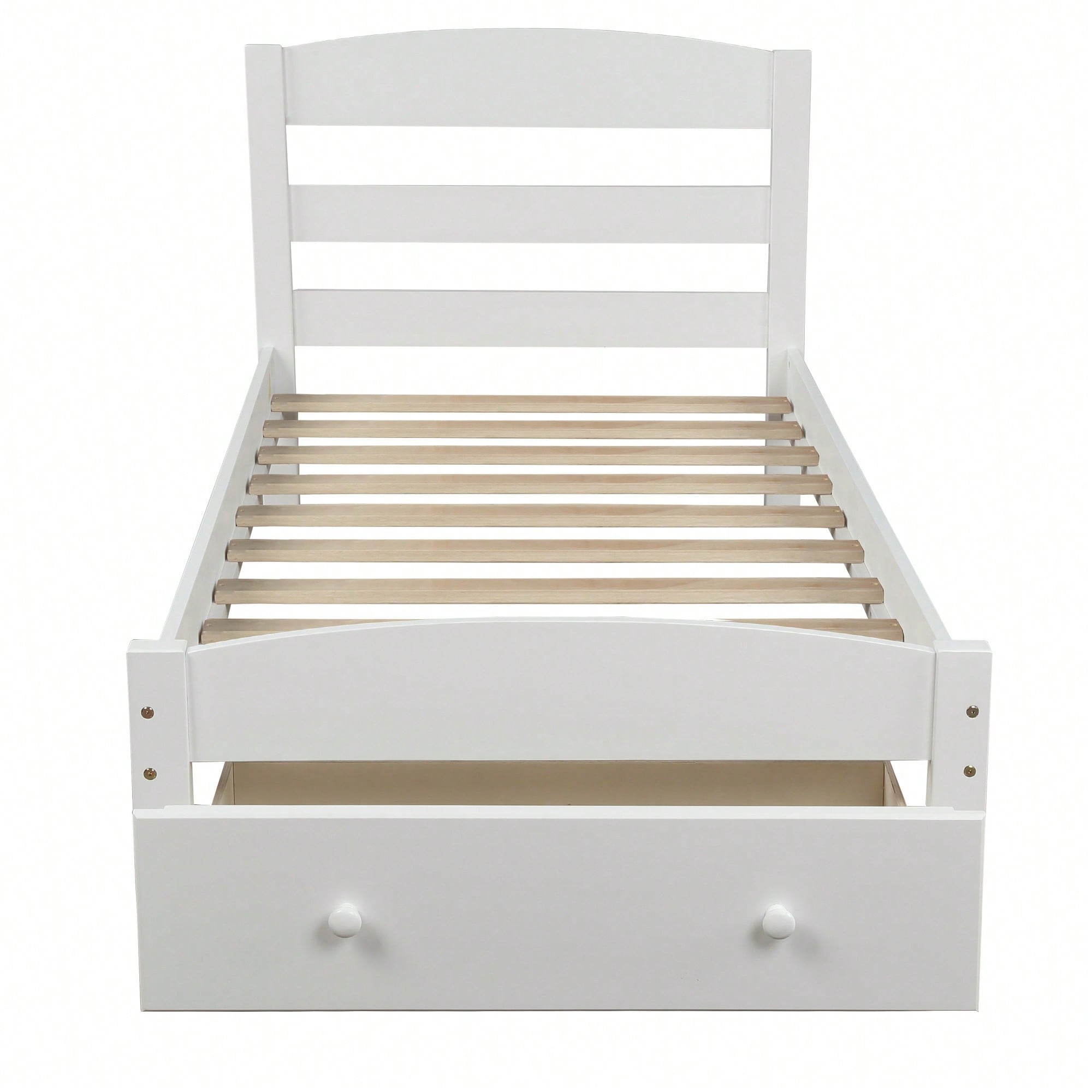 Twin Bed Frame With Storage Drawer And Wooden Slat Support No Box Spring Required White