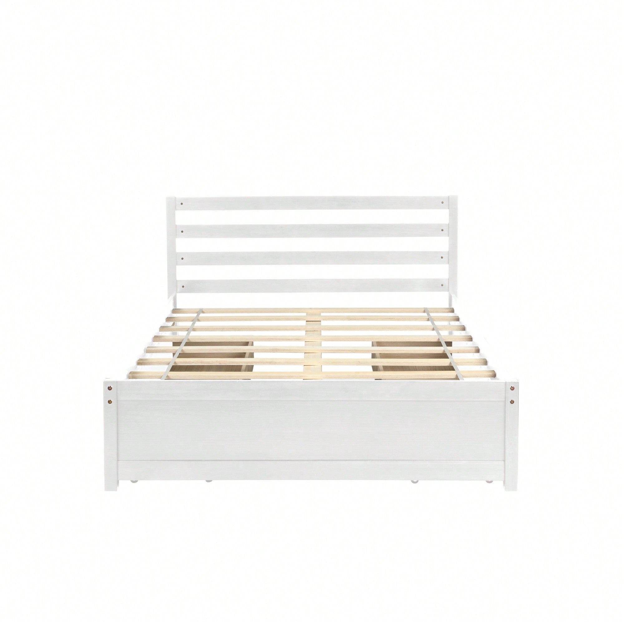 Full Size White Wood Platform Bed Frame With 4 Storage Drawers And Headboard For All Ages