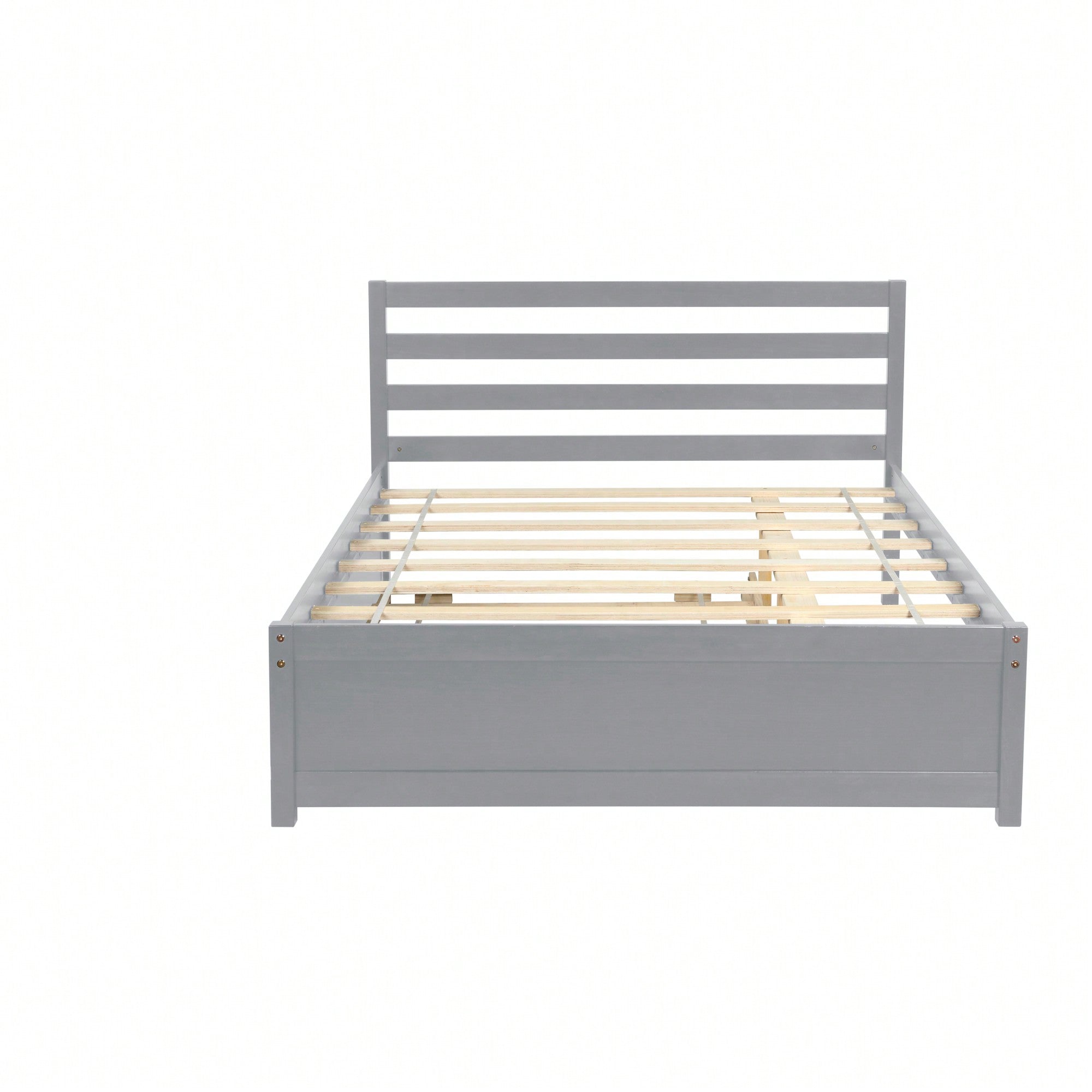 Full Size Wood Platform Bed Frame With Headboard And Twin Trundle For Space-Saving Solutions Grey