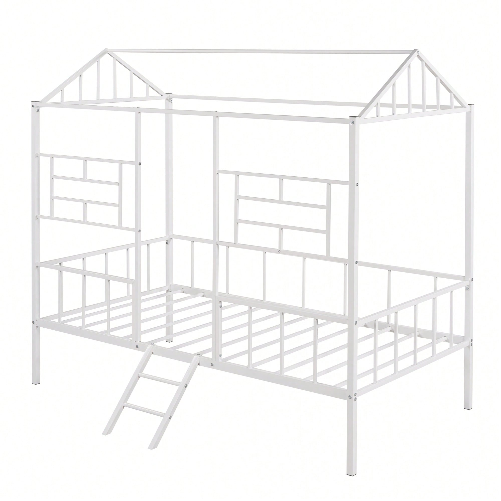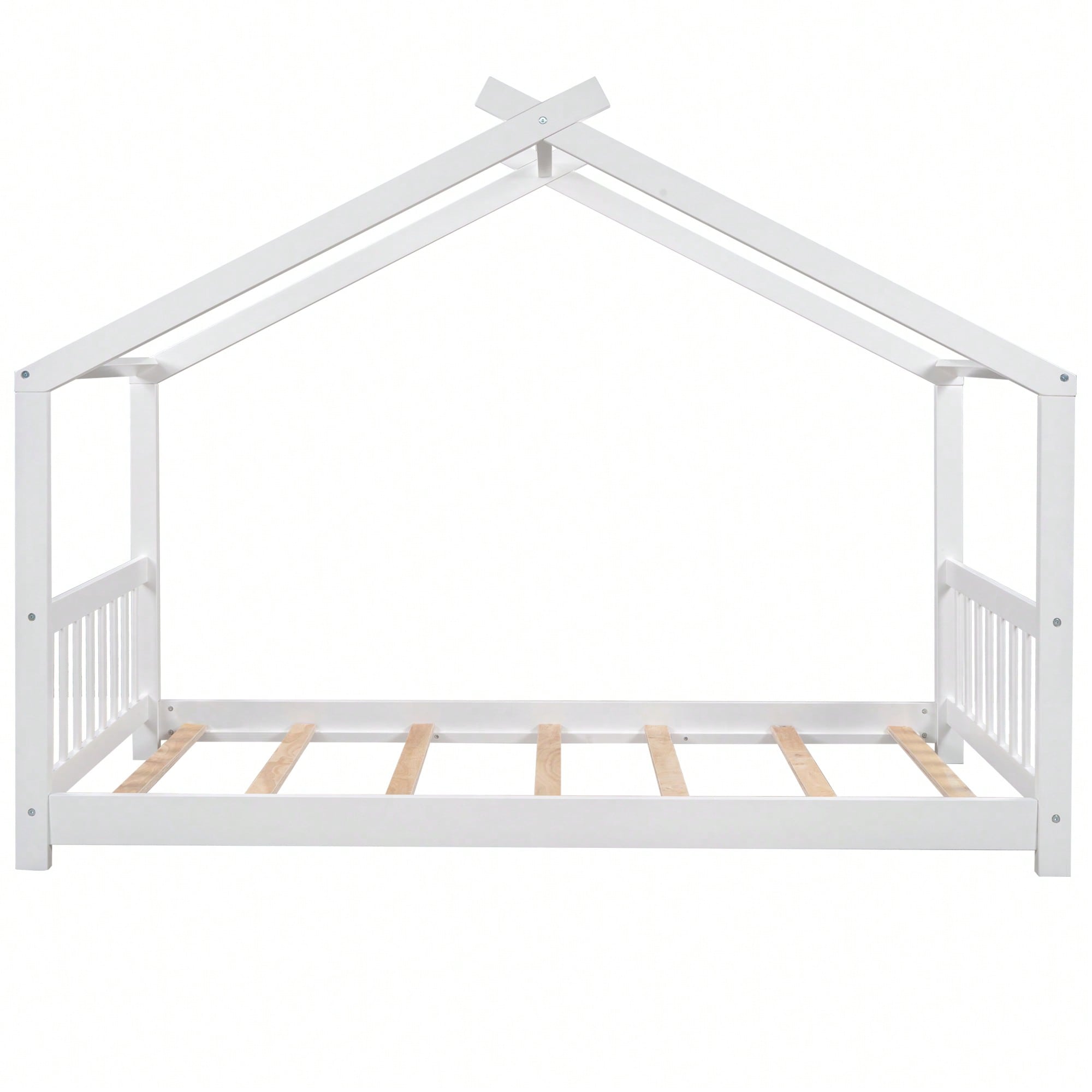 Twin Size Platform Bed With Roof Design Headboard And Footboard In White
