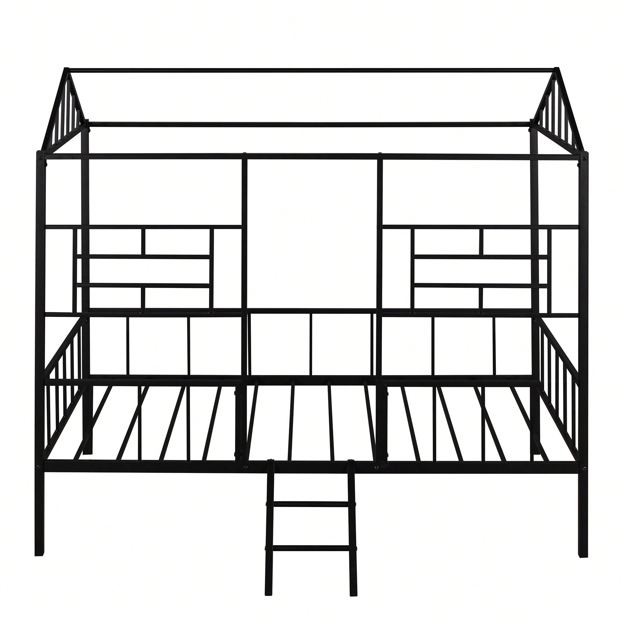 Sturdy Full Over Full Metal Bunk Bed Frame with Guard Rails Heavy Duty Space-Saving Design Easy Assembly Black Finish