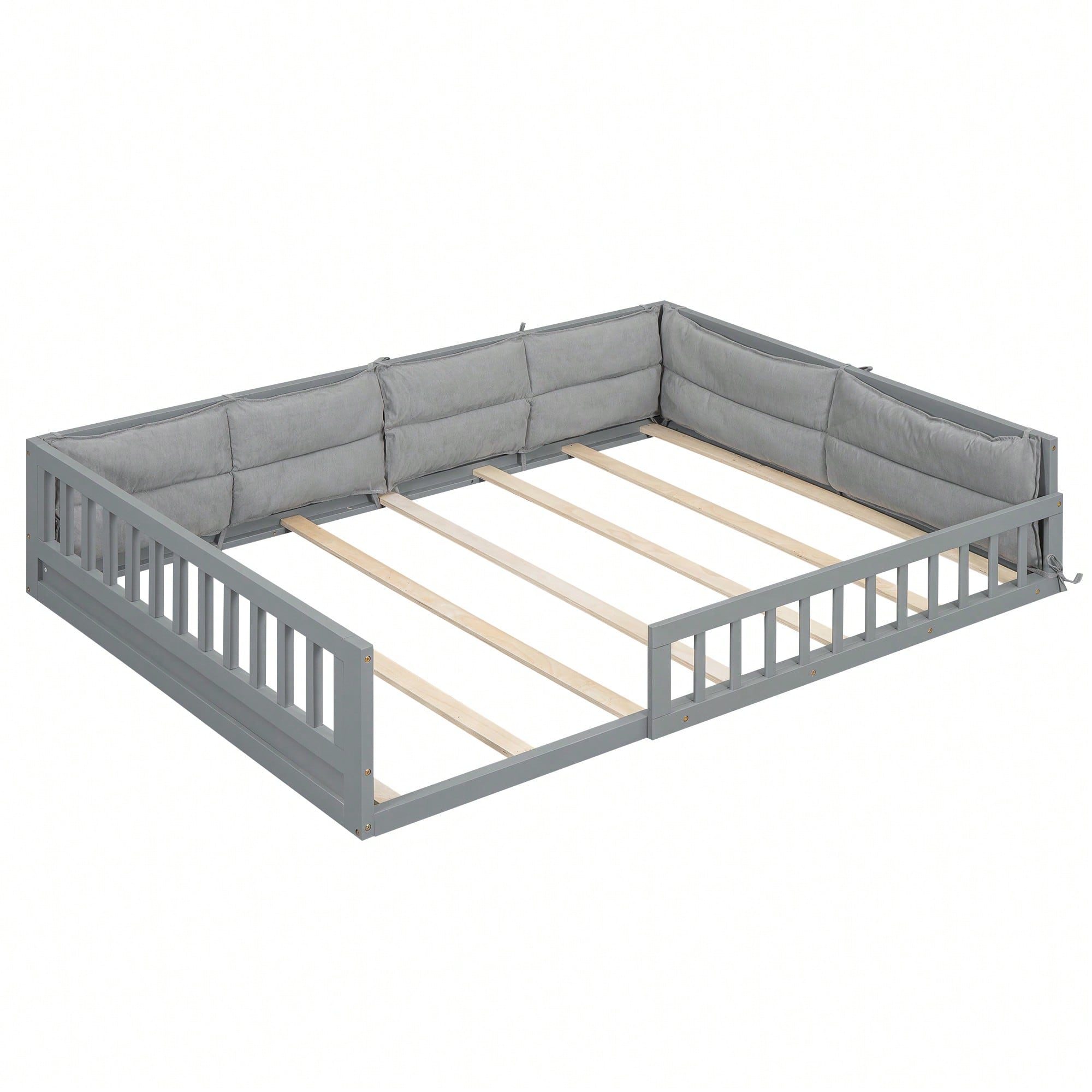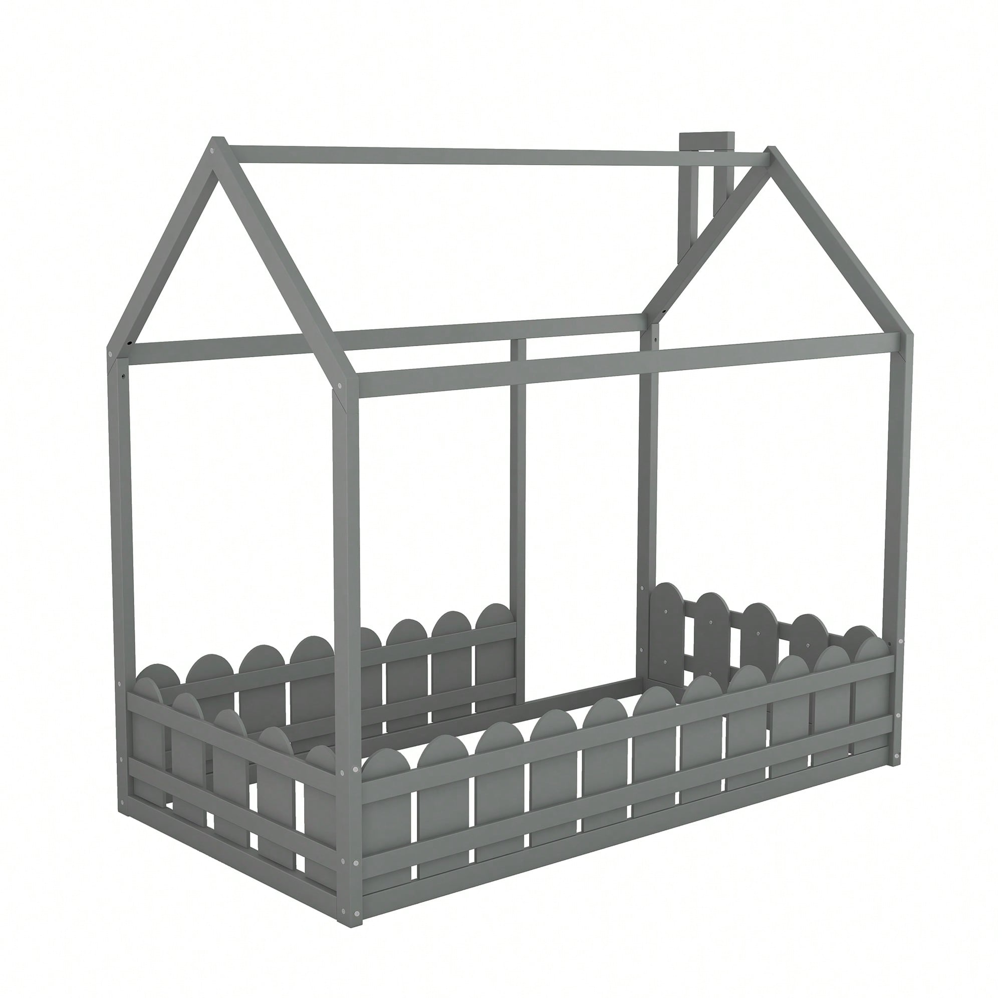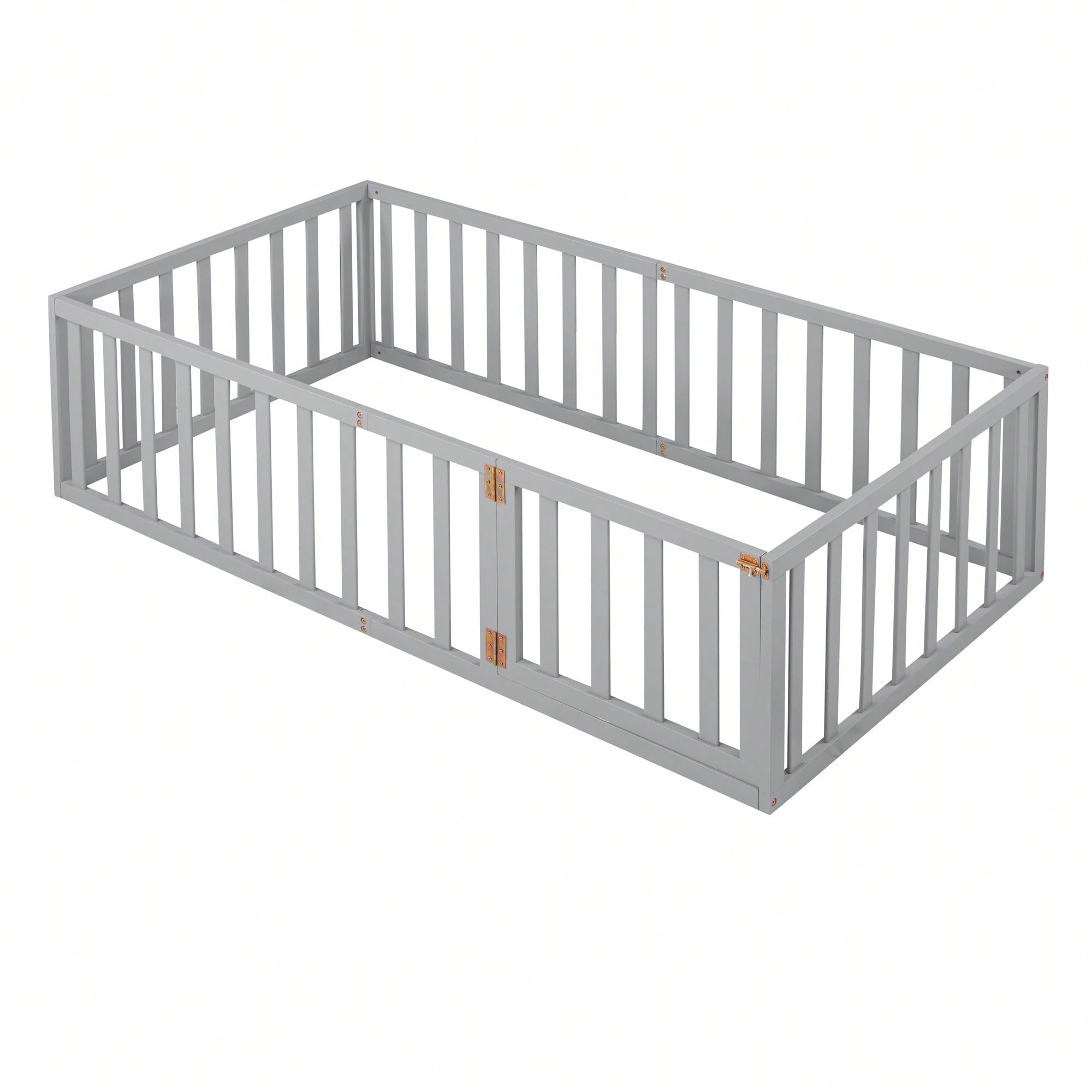 Twin Tent-Shaped Floor Bed With Guardrails And Slats In Grey For Safe And Cozy Sleep Space
