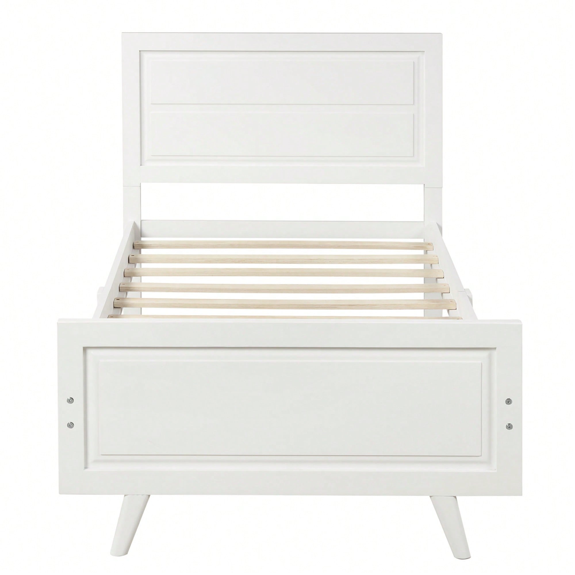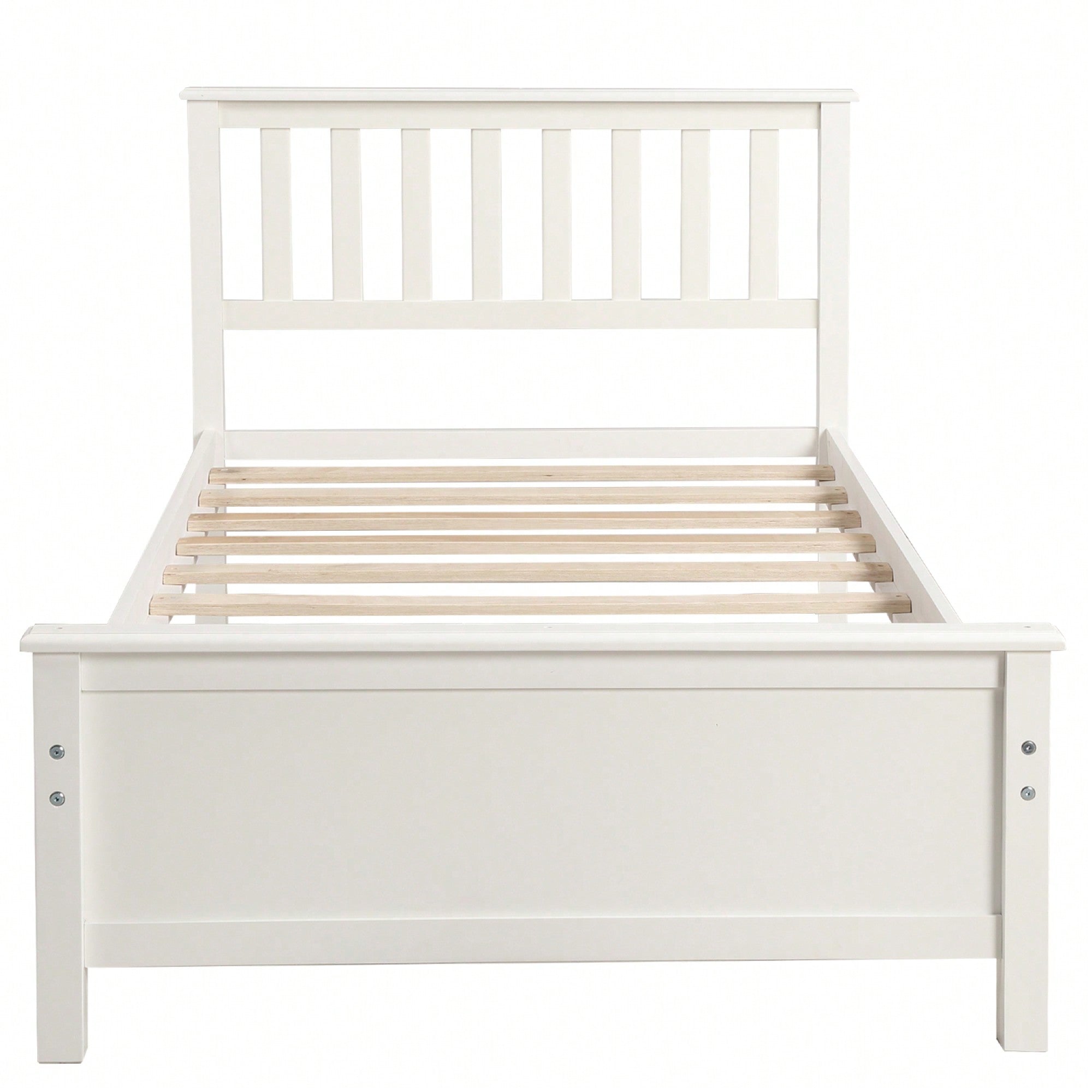 Twin Wood Platform Bed Frame With Headboard And Slat Support In White