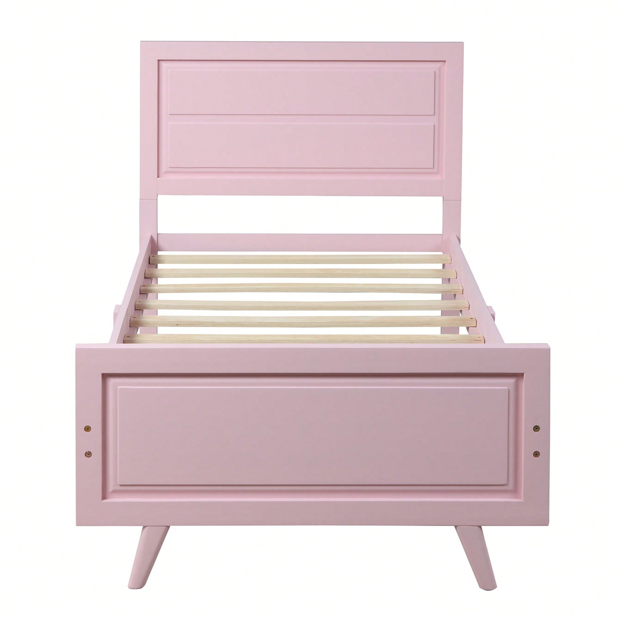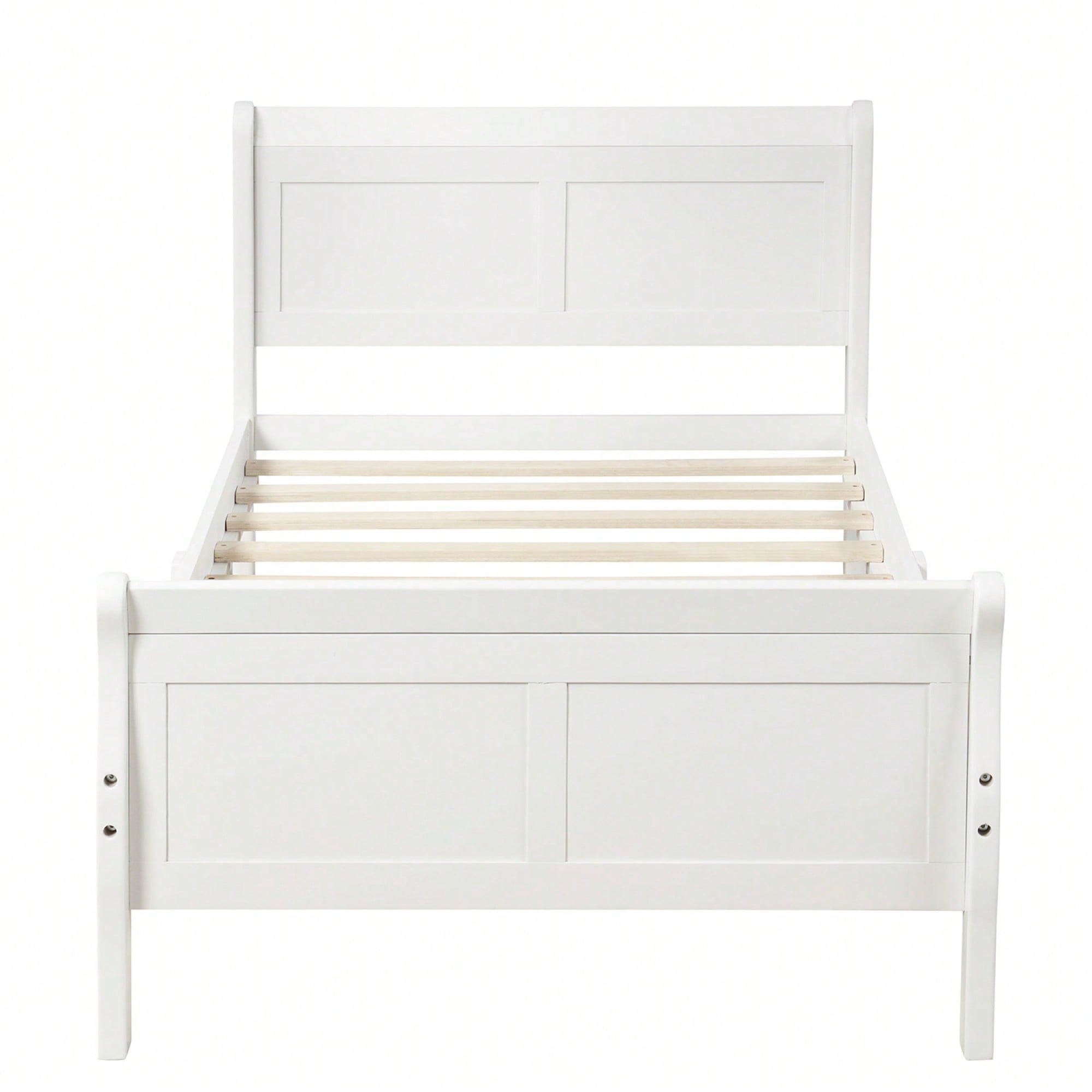 Twin Wood Platform Bed Frame With Sleigh Design Headboard Footboard And Slat Support