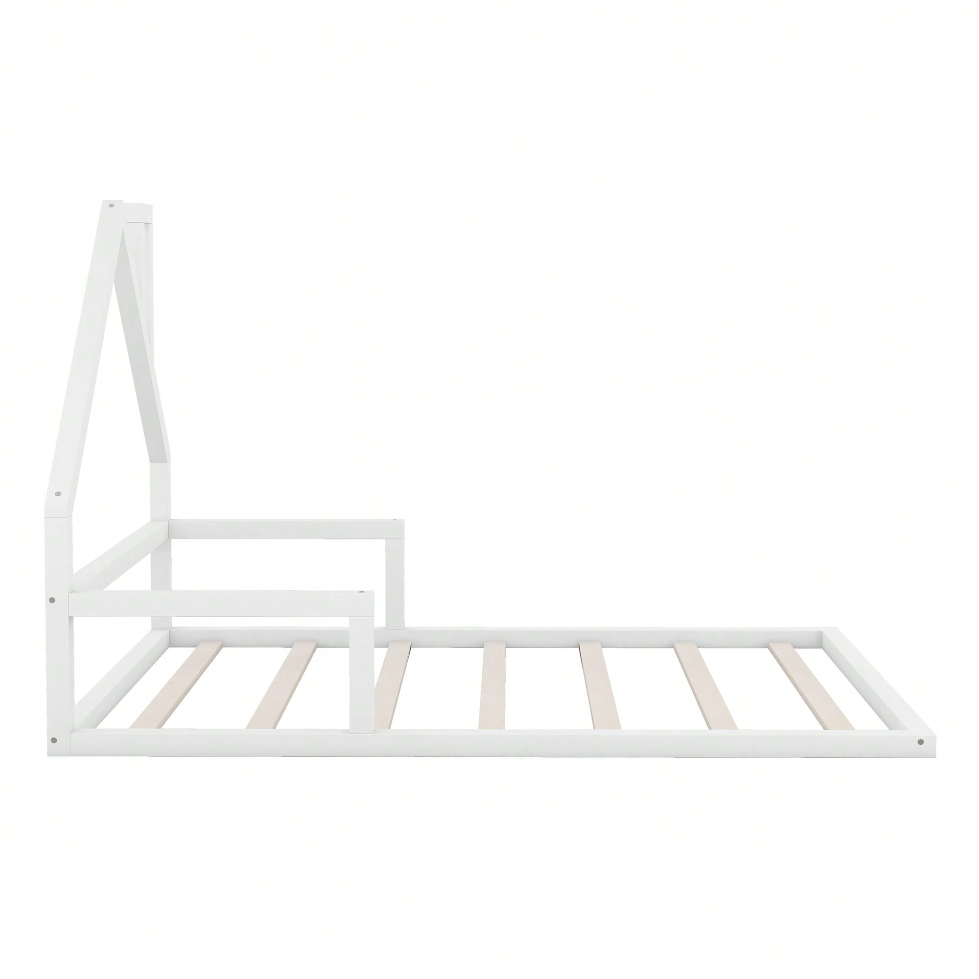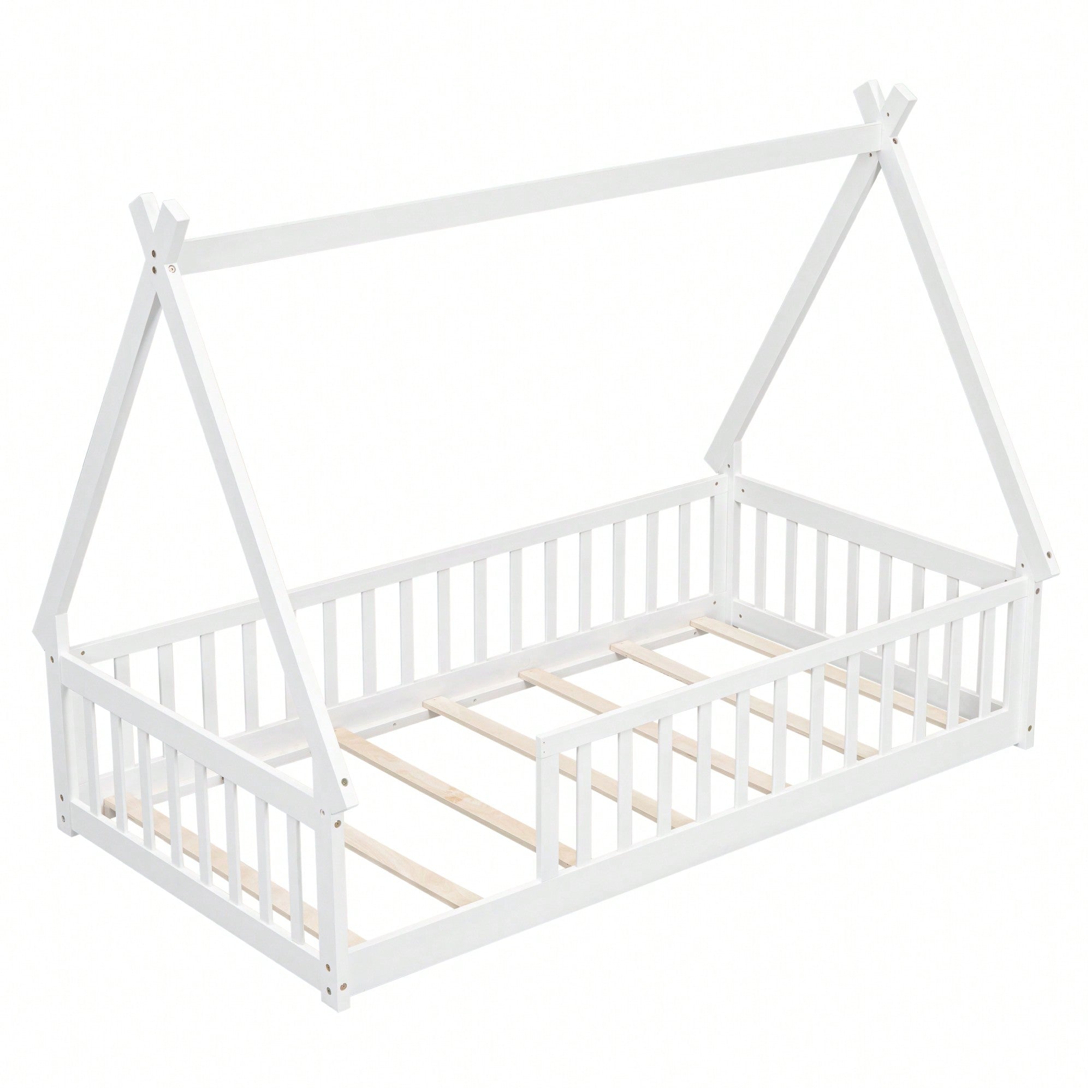 Twin Teepee Floor Bed With Guardrails And Slats In White