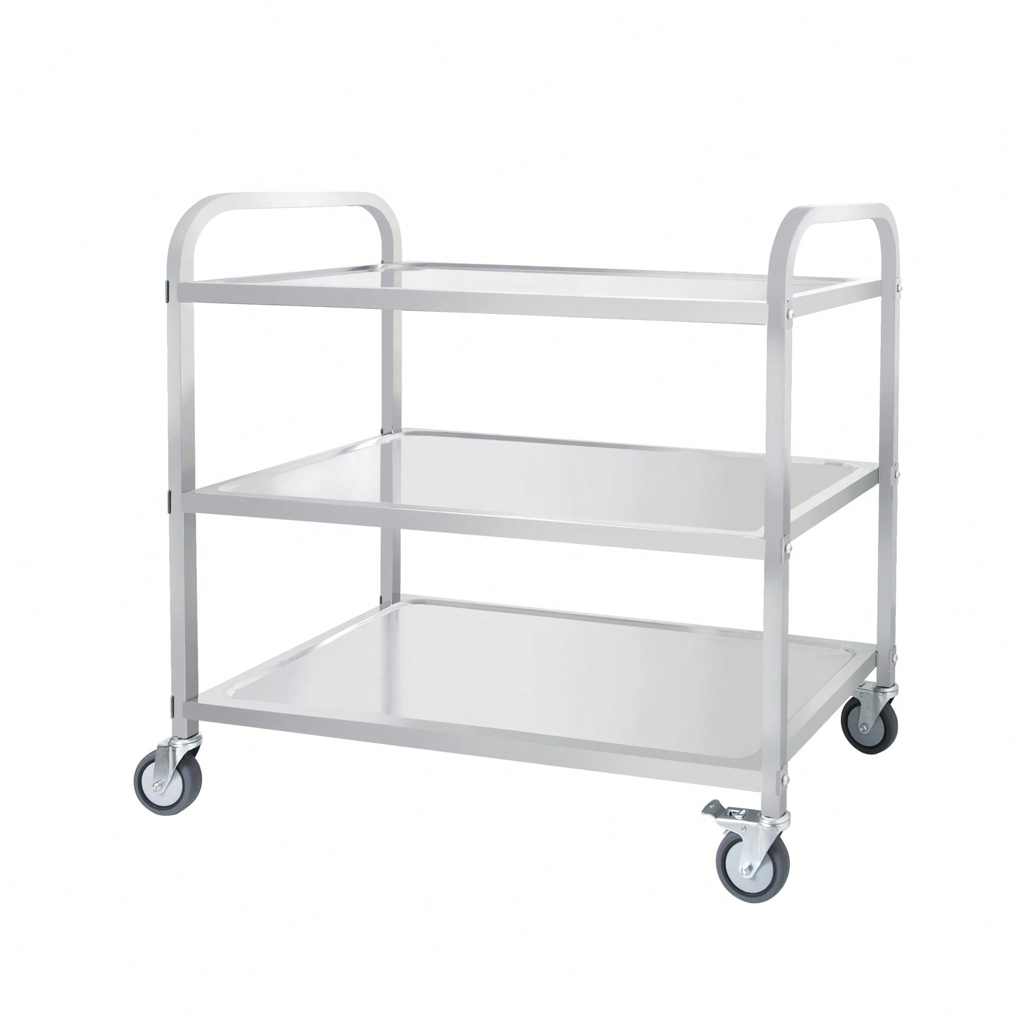Heavy-Duty 3-Tier Stainless Steel Rolling Cart with Locking Wheels for Kitchen and Service Use 400 LBS Capacity