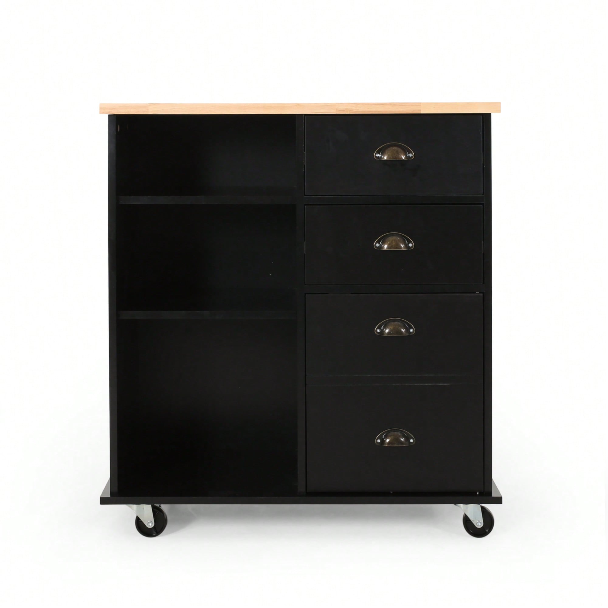 Regular price $158.99 USDSale price $158.99 USD Regular priceUnit price per$300.99 USDSale Sold out1.Farmhouse design with rubber wood table top2.Hidden storage drawer with metal slide rail3.Lockable wheels for easy movement4.Multiple storage compartments and shelves5.Towel and seasoning racks on both...